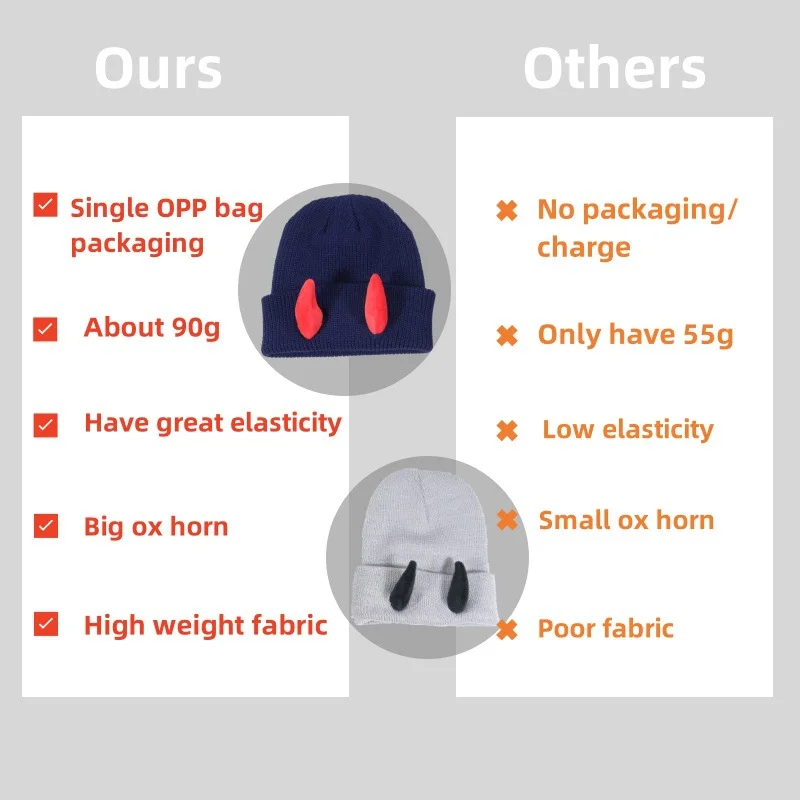 Halloween Horn Hat European and American Autumn and Winter Funny Knitted Hat Outdoor Warm and Windproof Woolen Hat