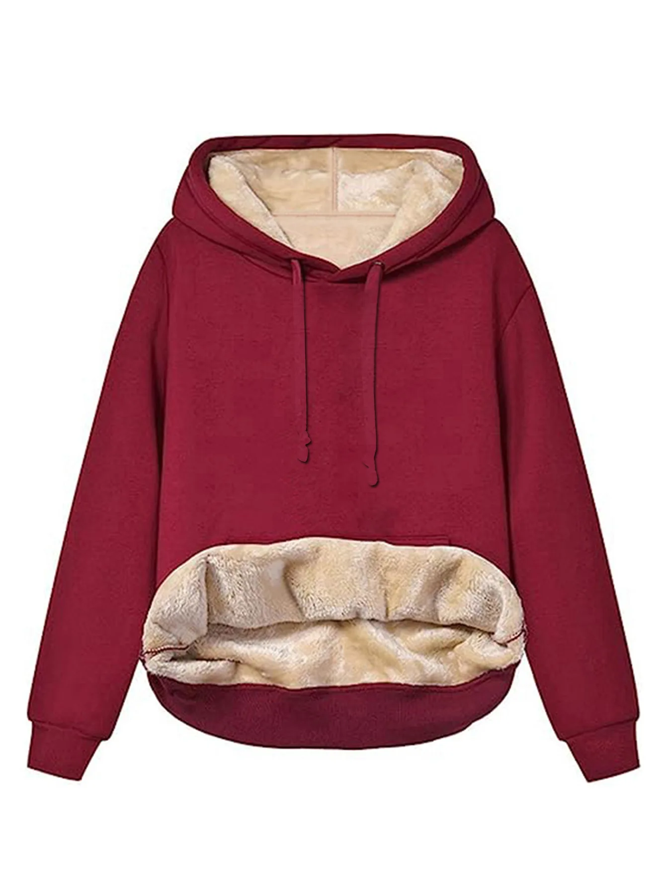 Autumn and Winter Women's Clothing Warm Lamb Fleece Pocket Hoodie Sweatshirt