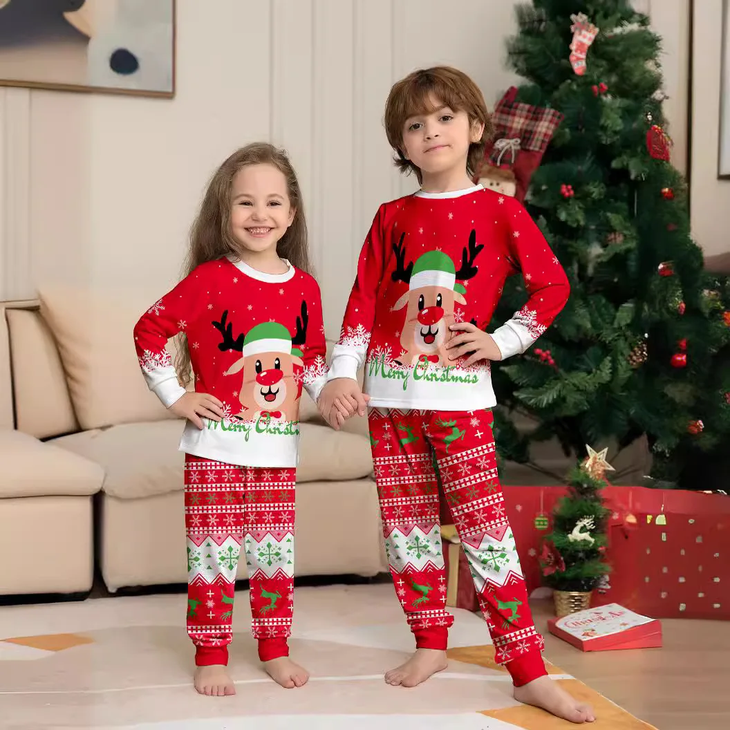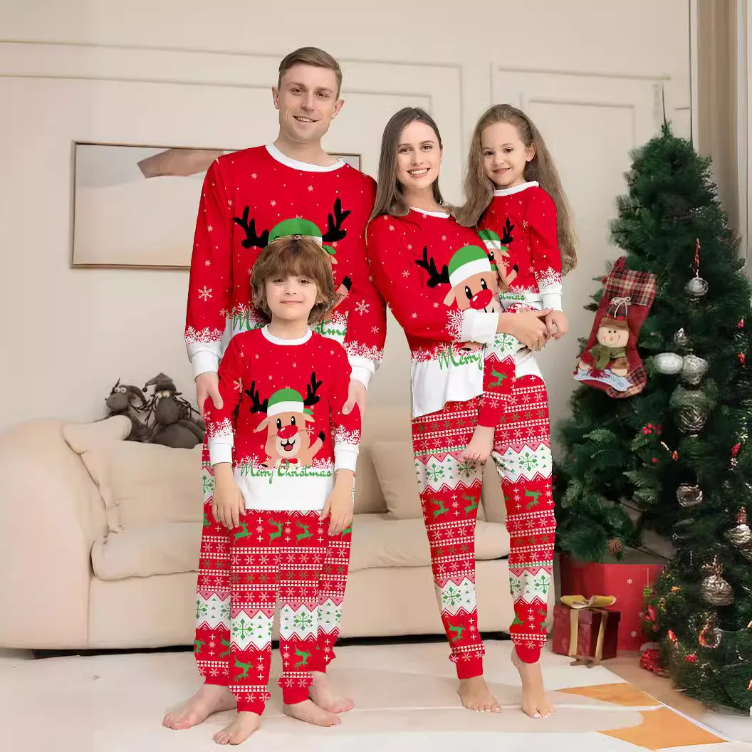 Christmas Red Parent-child Outfit New Style Chubby Reindeer Cartoon Set Holiday Pajamas Loungewear