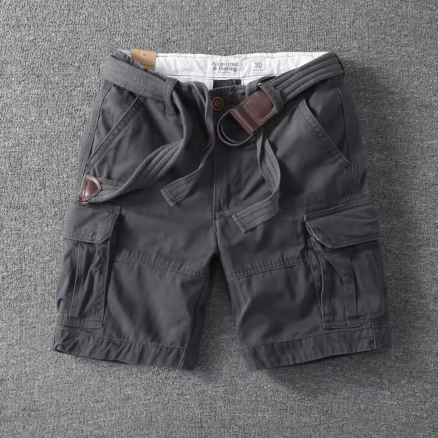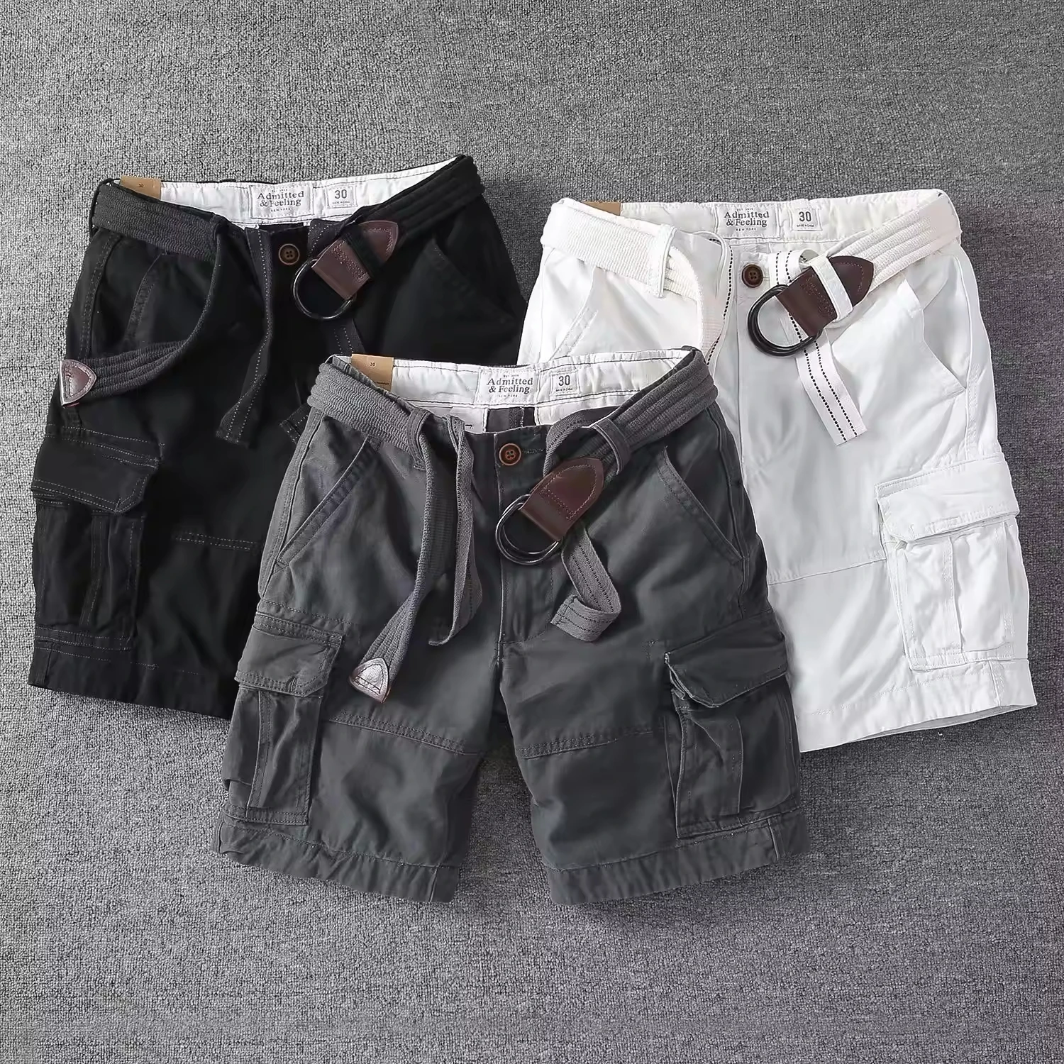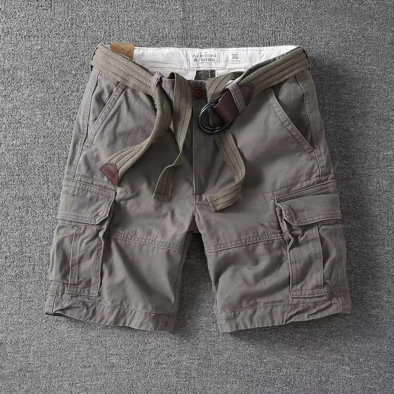 Men's Casual Workwear Shorts All-Cotton Loose Quarter-Length Pants with Versatile Pockets Solid Pattern for Summer