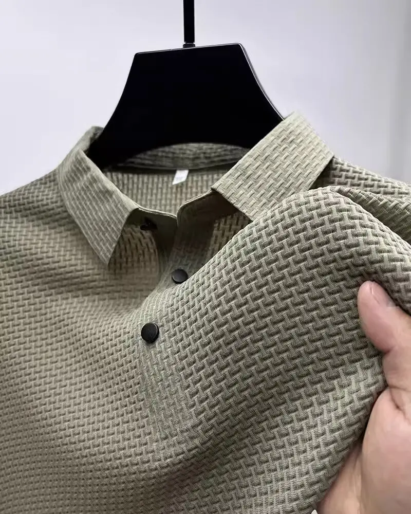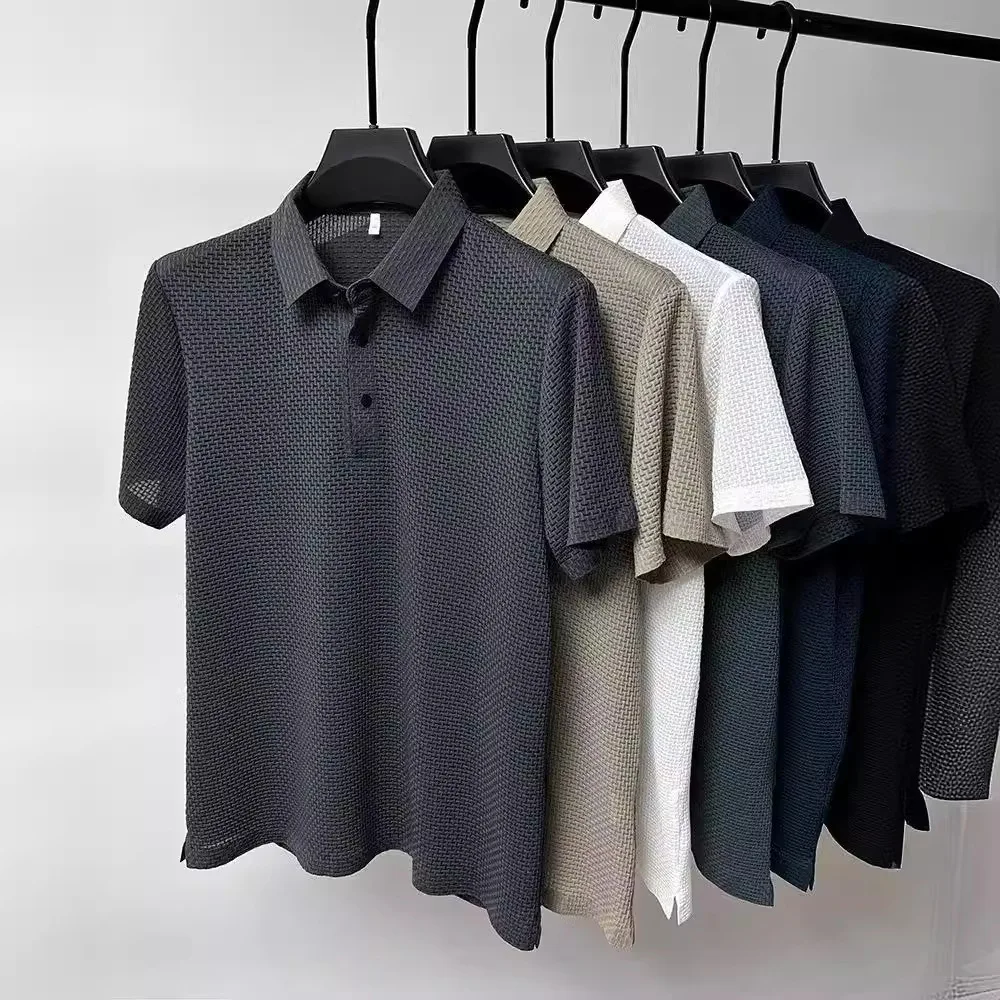 New Summer Vintage Style Men's for Shirt with Stand Collar Short Sleeves 100% Polyester Breathable & Quick Dry Business Casual