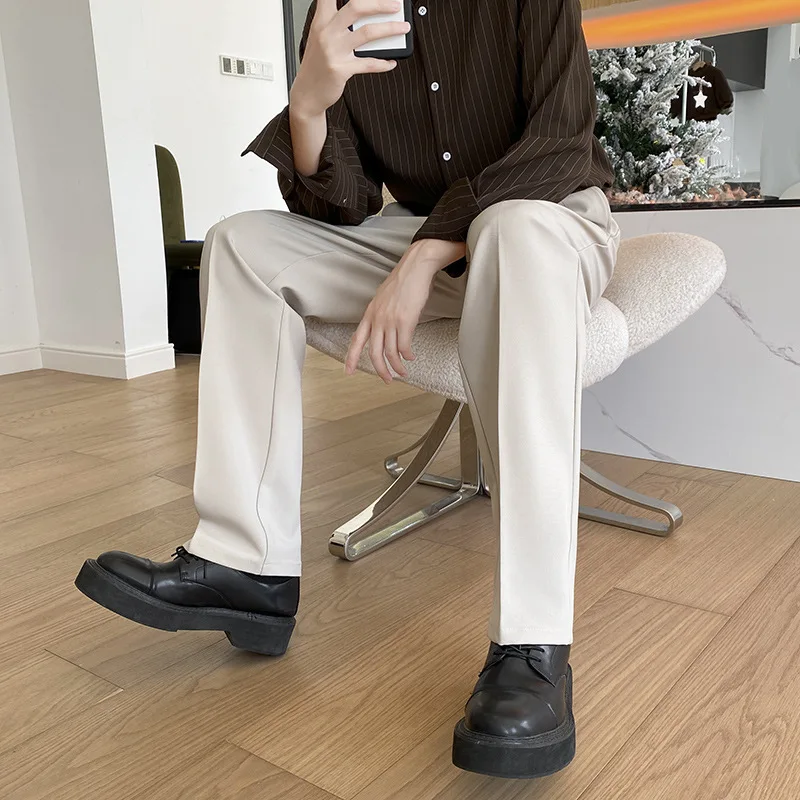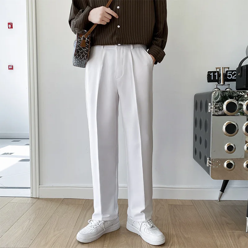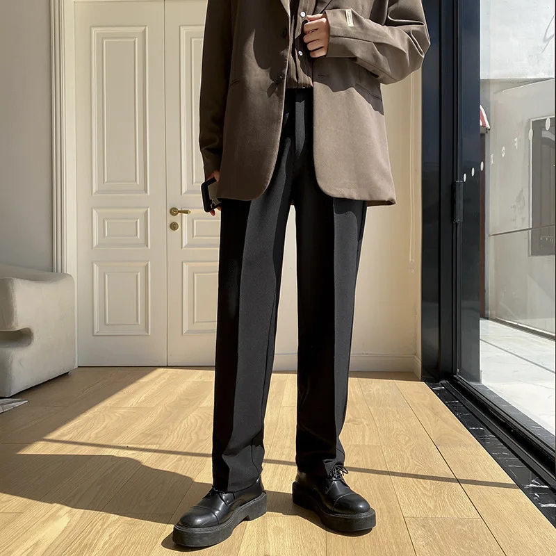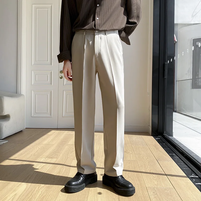 New Straight Leg Wide Leg Mid Waist Formal Men's Suit Trousers Eco-Friendly Waterproof Heavy Feeling Loose Fit Large Size