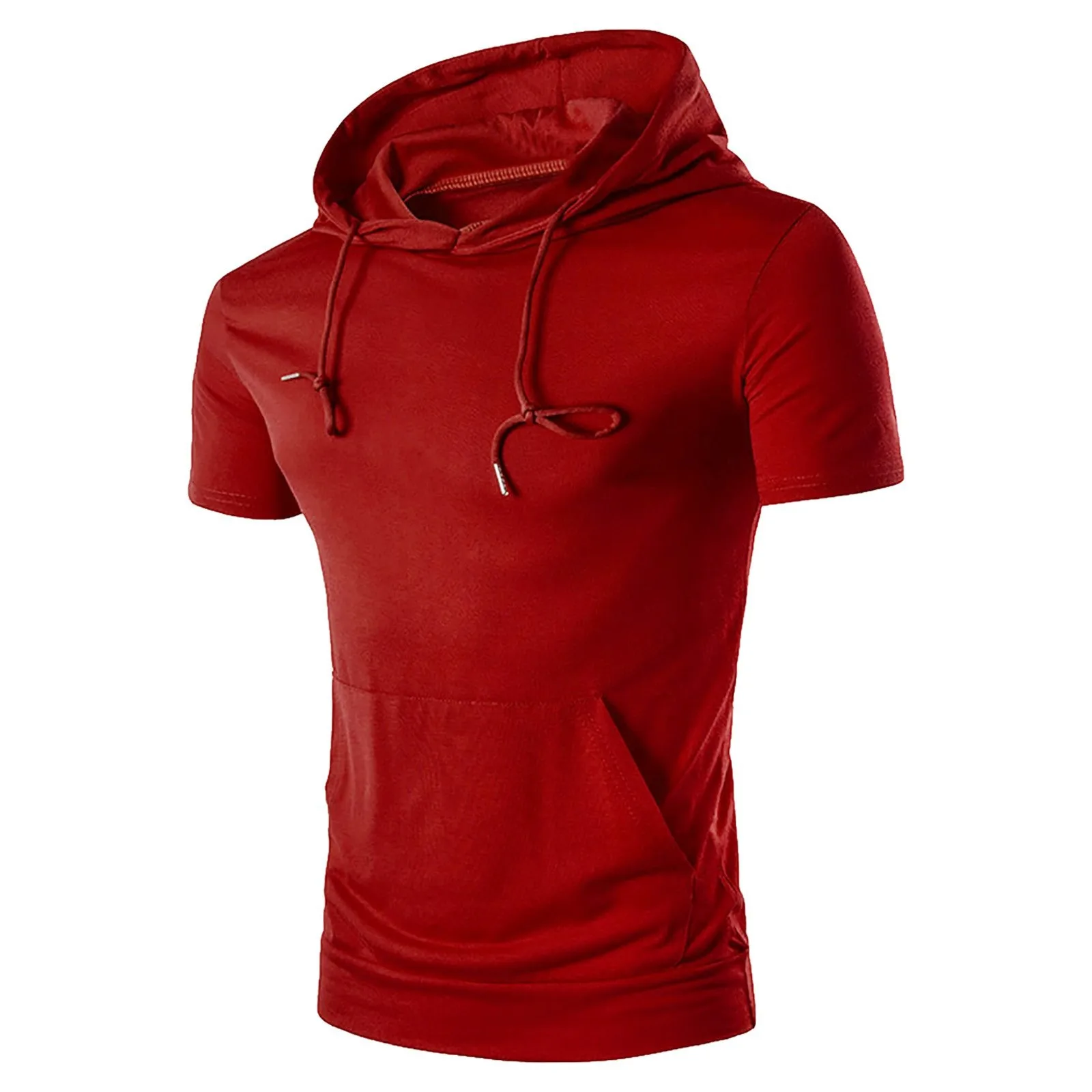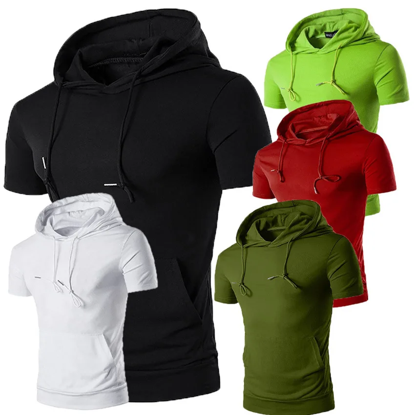Custom Summer Men and Women with Solid Color Hooded Leisure Sports Knitted Fitness with Hooded Pocket Loose Short Sleeved Design
