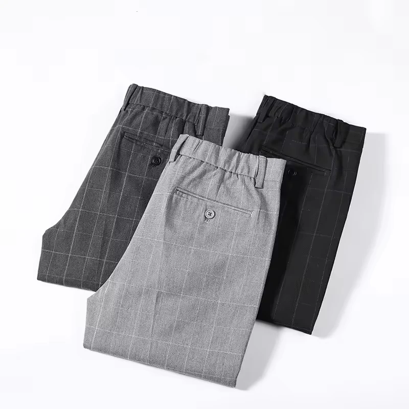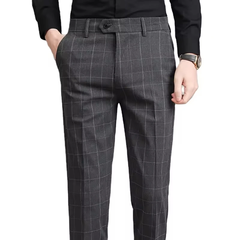 Summer Checkered Men's Casual Pants Korean Version Slim Fit Small Straight Leg Small Trousers Fashionable Elastic Long Pants