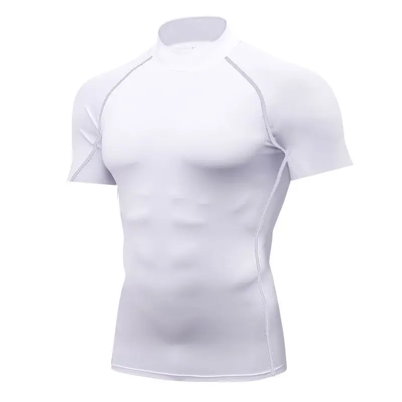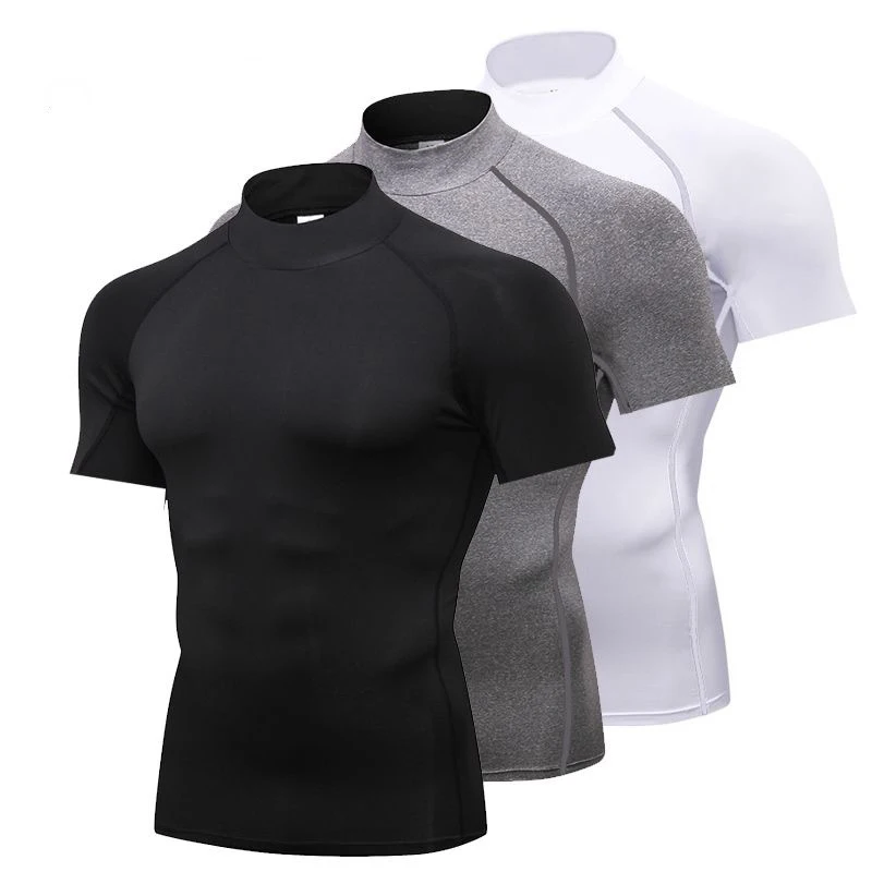 High Neck Fitness Suit Men T-shirt Sports Tight Fitting Suit Gym Training Compression Suit Basketball Quick Drying Running Short