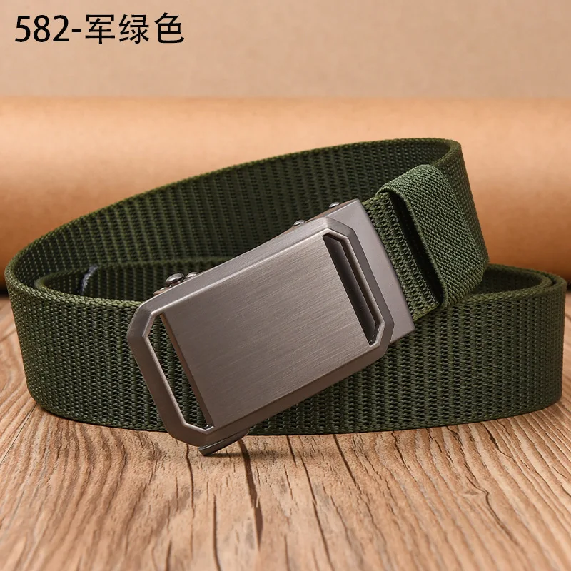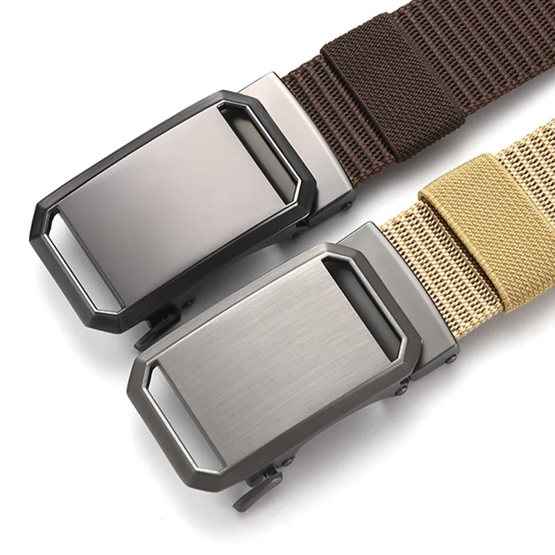 Men's Thickened Canvas Belt with Automatic Buckle Plus Size Belt for Trousers