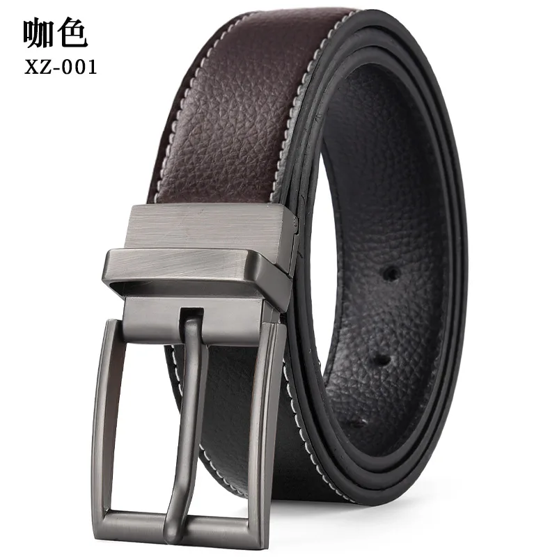 Custom New Men's Button Leather Belt Casual Punched Waist Belt Rotating Buckle Waistband