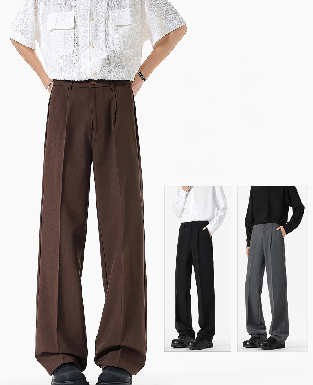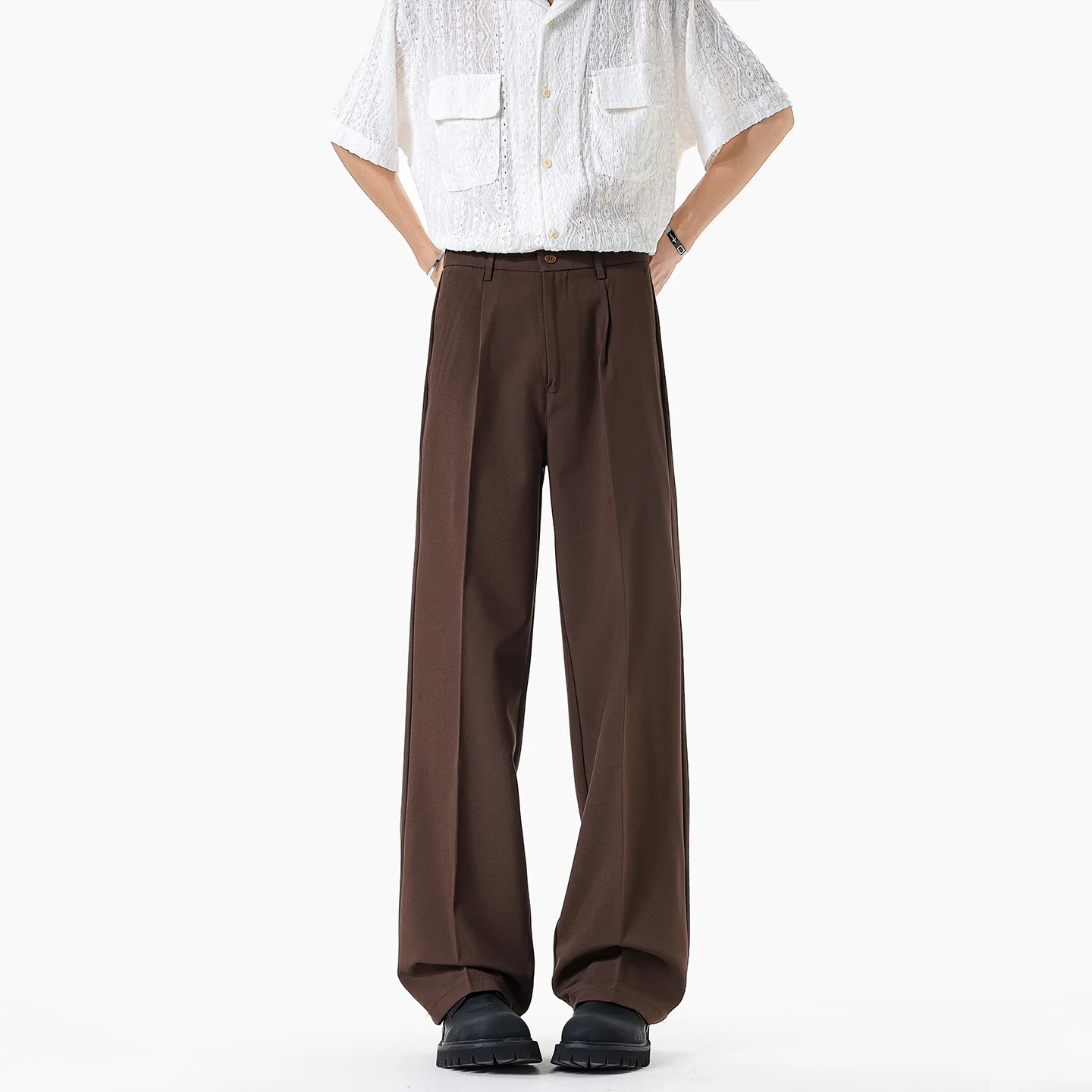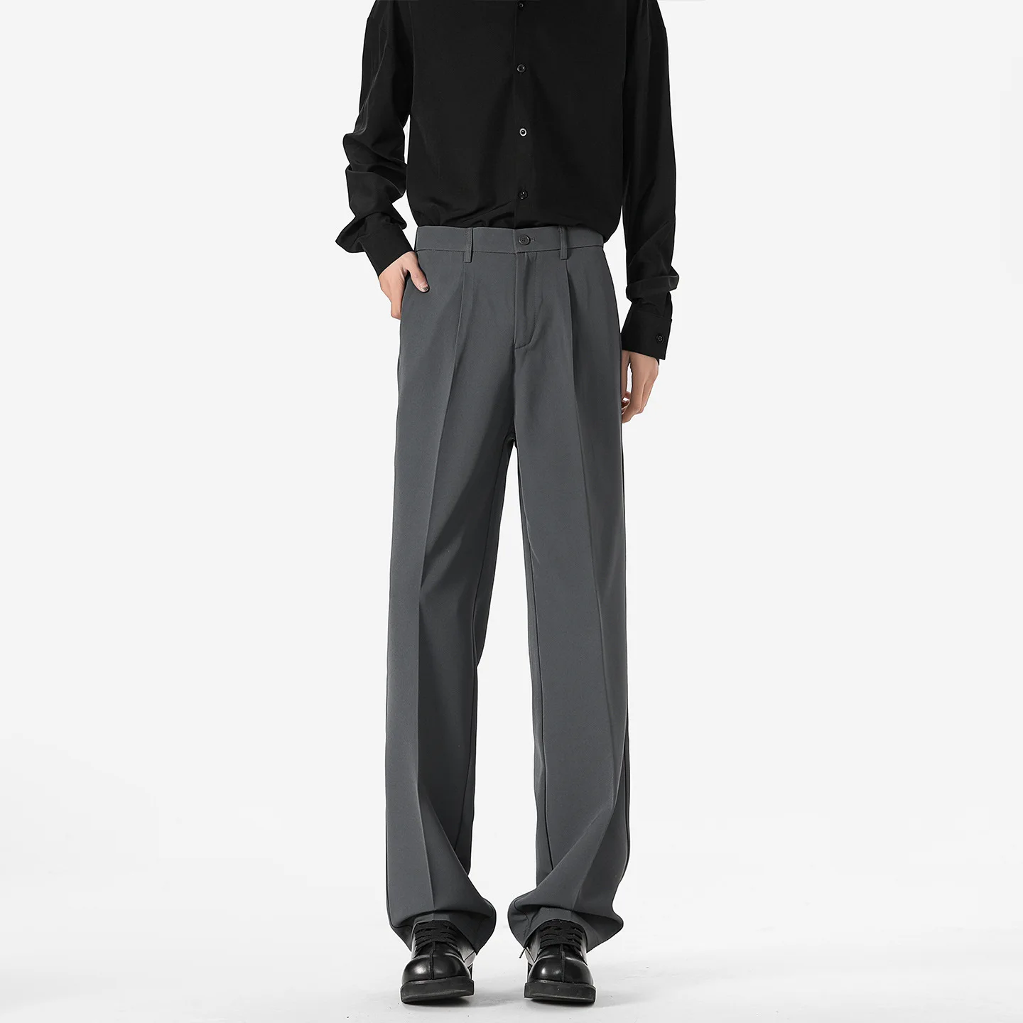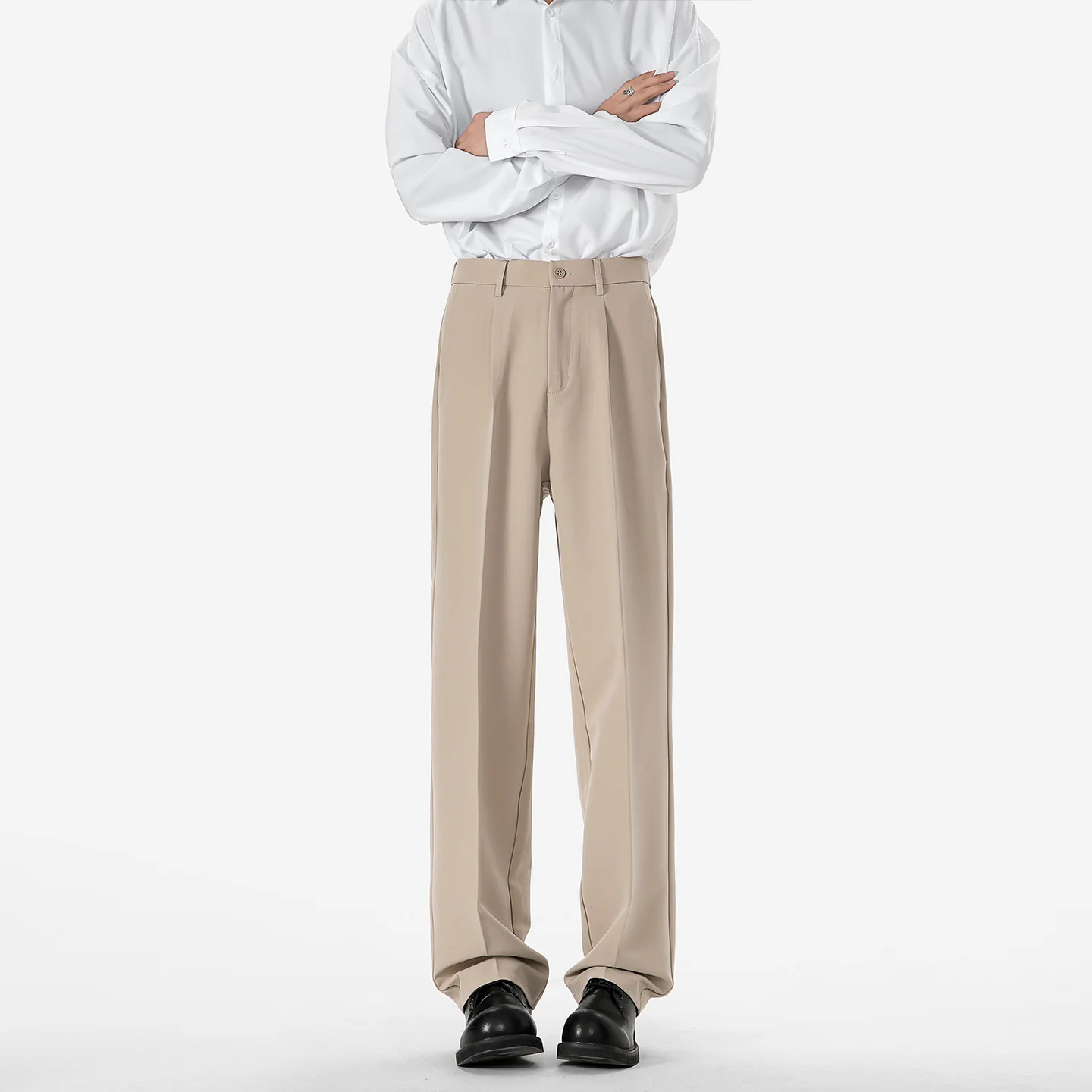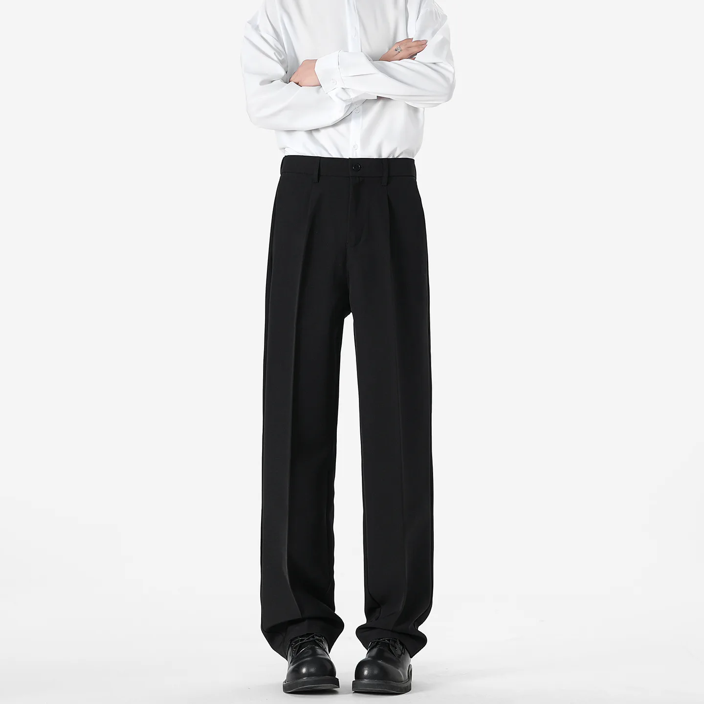 Spring and Summer Men's Suit Pants Casual Thin Straight Leg Trousers Business High Waist Italian Paris Button Trousers