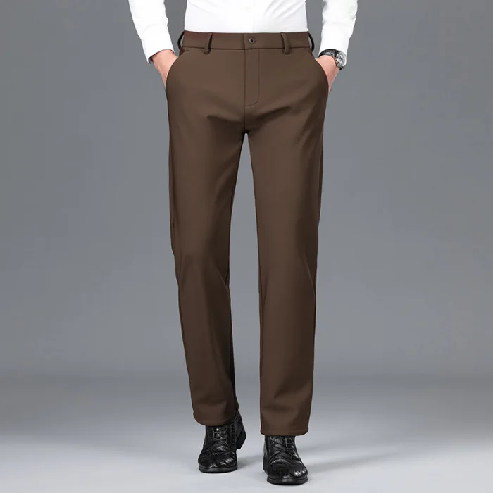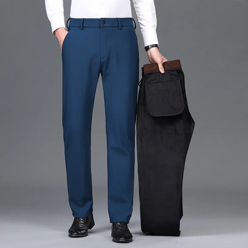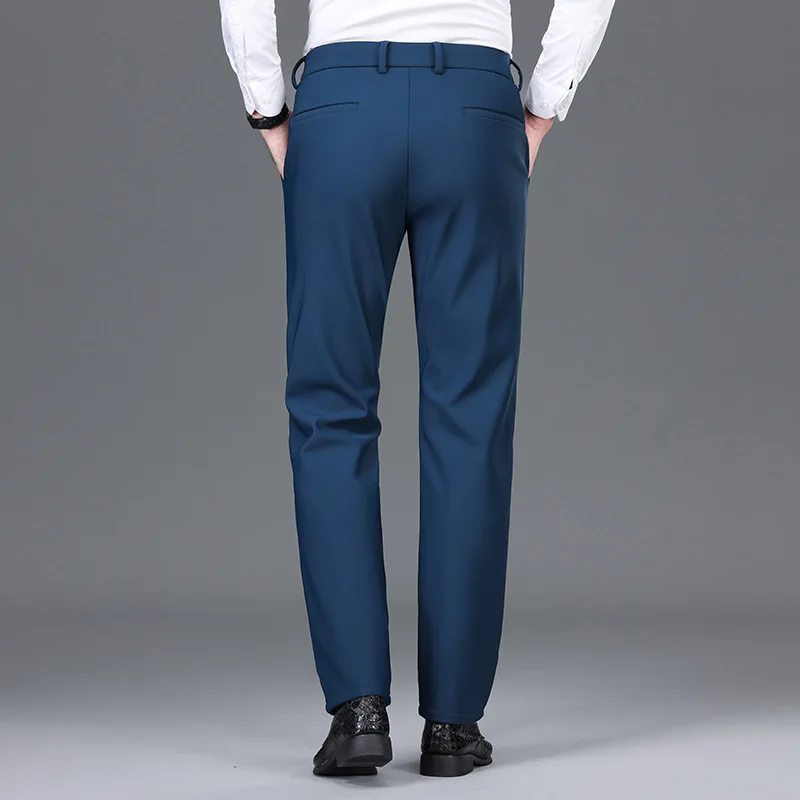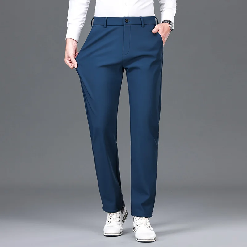 Thickened Casual Pants for Men High-stretch Trousers Mid-high Waist Straight-leg Pants Wrinkle-free Long Trousers