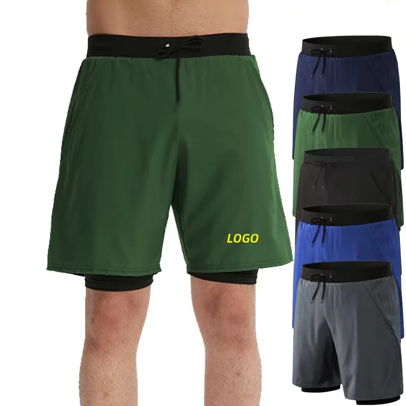 High Quality Men's Solid Elastic Mid-Waist Double Layer Breathable Quick Drying Sports Training Shorts