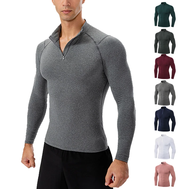 Men's Autumn and Winter Fleece Fitness Clothing High Elasticity Close-fitting Sports Long-sleeved Half-zipper Stand-up Hoodie