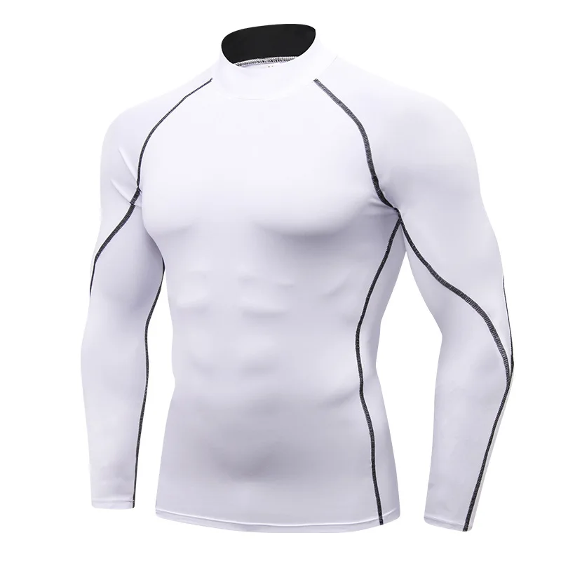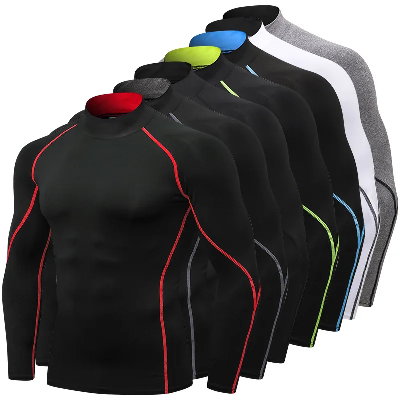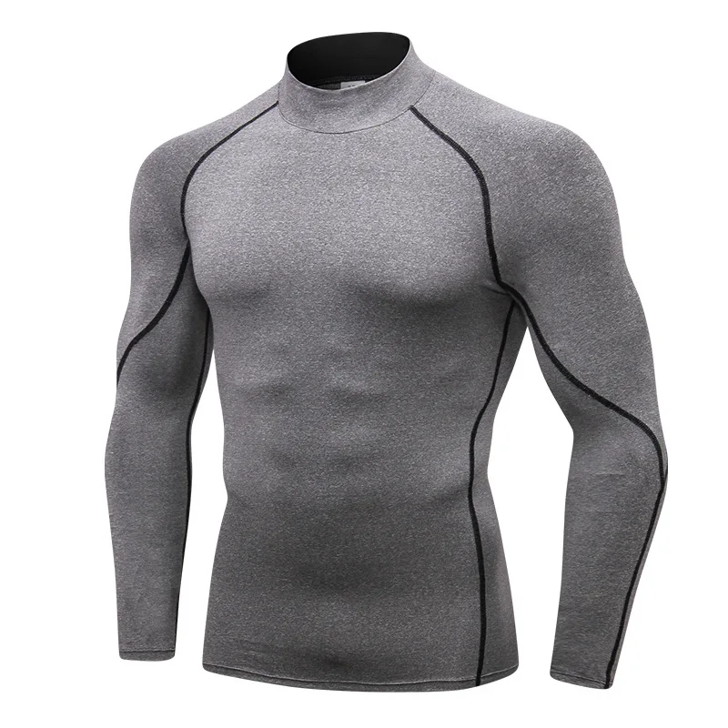 Men's High-neck Fitness Long-sleeve Sports Running T-shirt Autumn Winter Elastic Close-fitting Breathable Stand-coll Sweatshirt