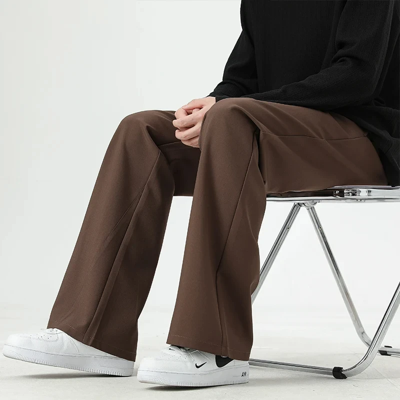 Small Flared Version Men's Casual Pants Fashion Korean Loose Elastic Drape Business Office Solid Color Suit Trousers