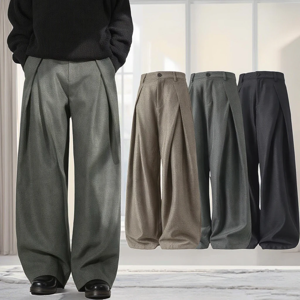Casual Trousers for Men Autumn Draped Loose Straight-leg Trousers Retro Long Pants