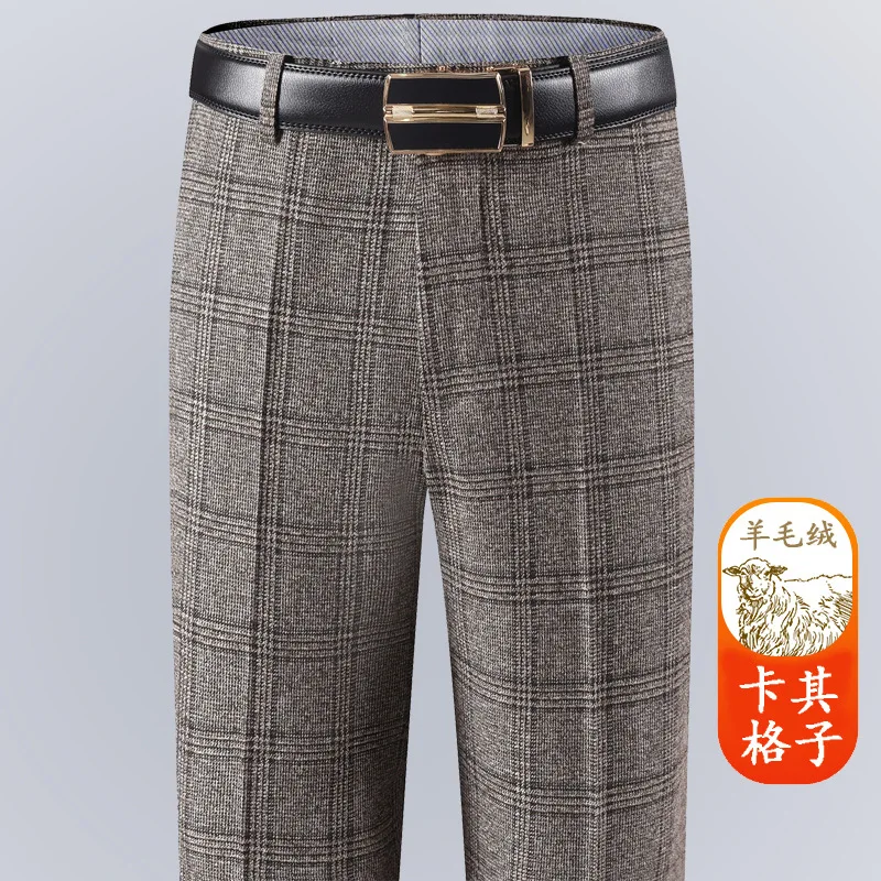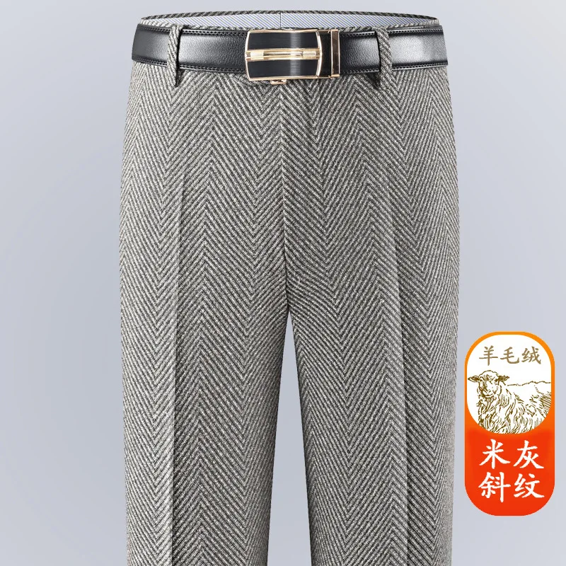 Winter and Autumn Thick Style Men's Business Casual Straight Leg High-Waist Loose Non-Stretch Wool Suit Pants Men's Pants