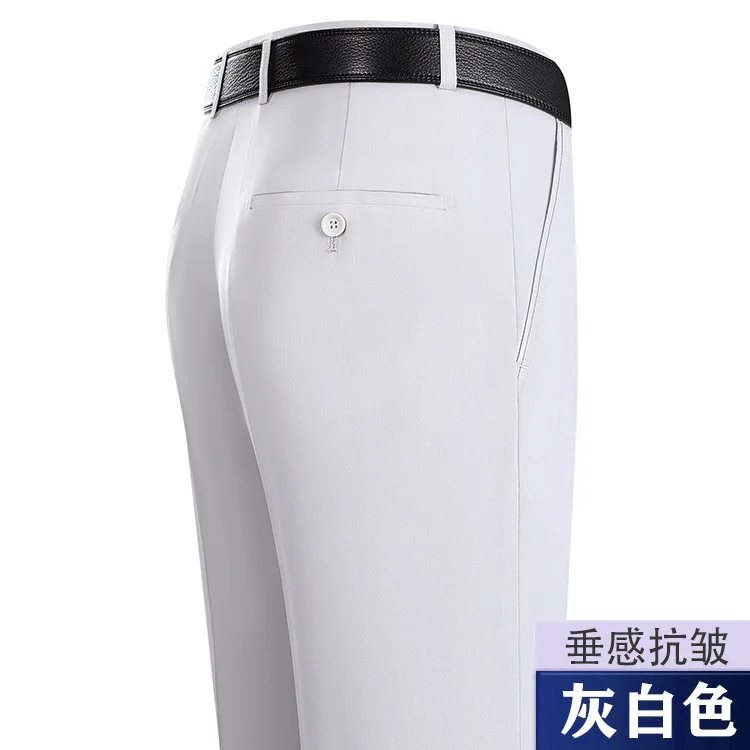 Summer Lightweight Mulberry Silk Men's Formal Suit Pants for Men's Year Wrinkle-free Work Straight-leg Pants for Men