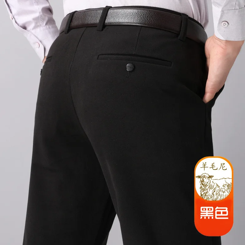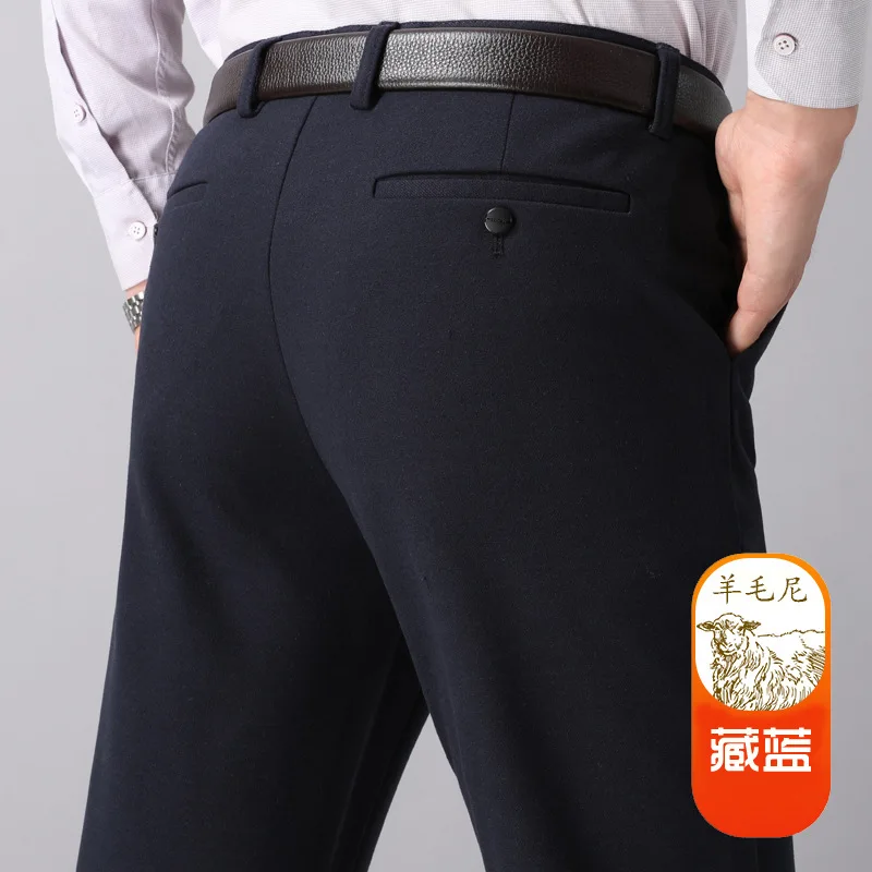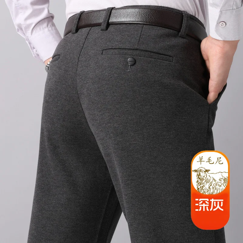 Men's Winter Midweight Woolen Suit Pants Mid Loose Straight-leg Wrinkle-resistant Non-iron Waterproof Eco-Friendly Formal