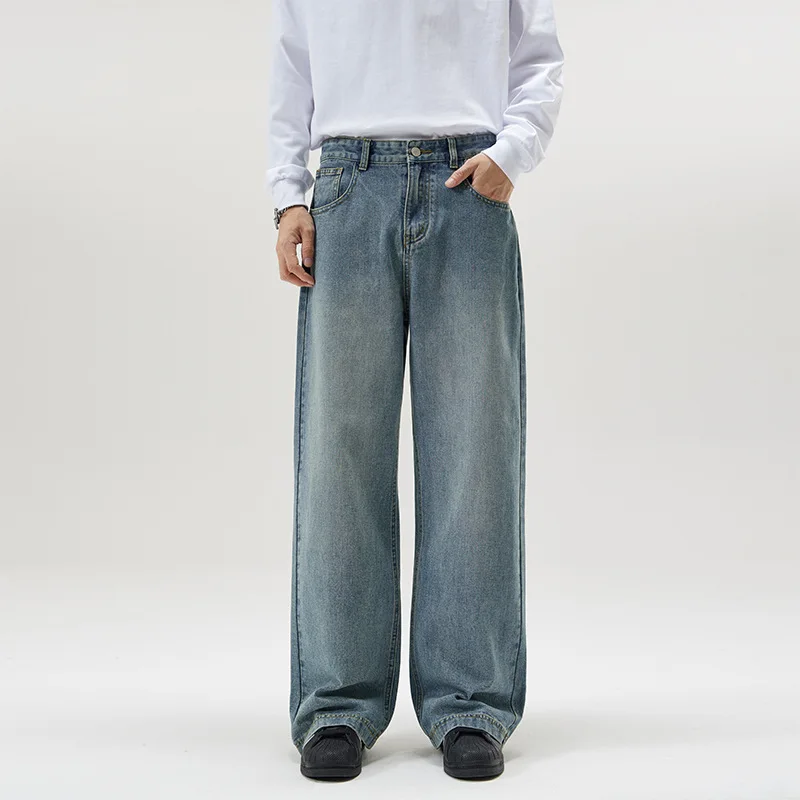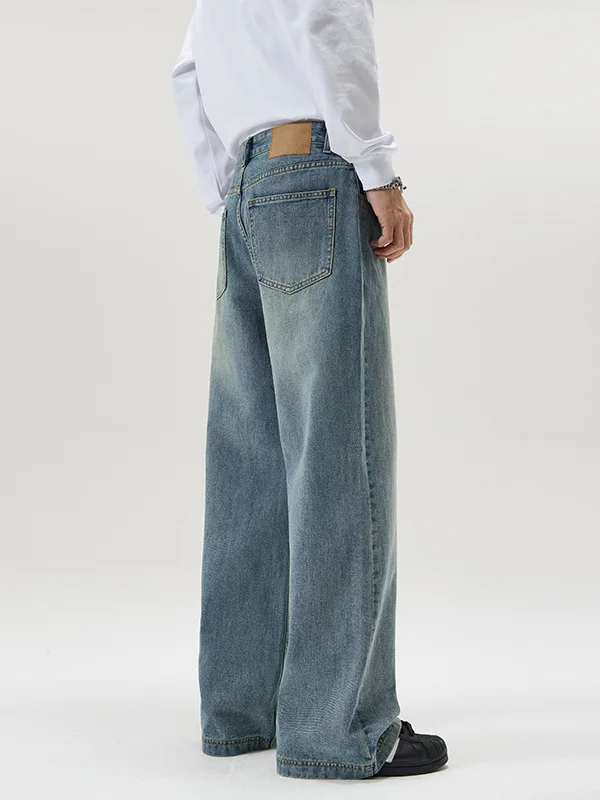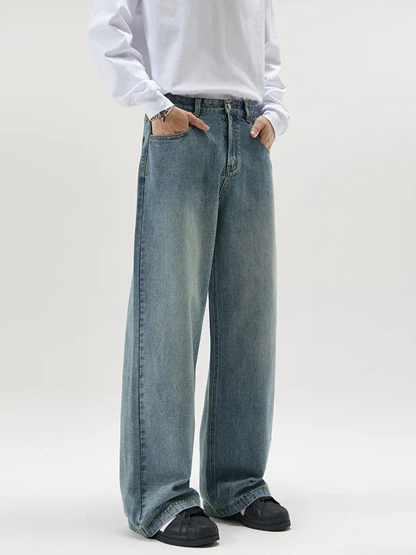 Loose Washed Jeans for Men Versatile Straight-leg A-line Floor-length Trousers