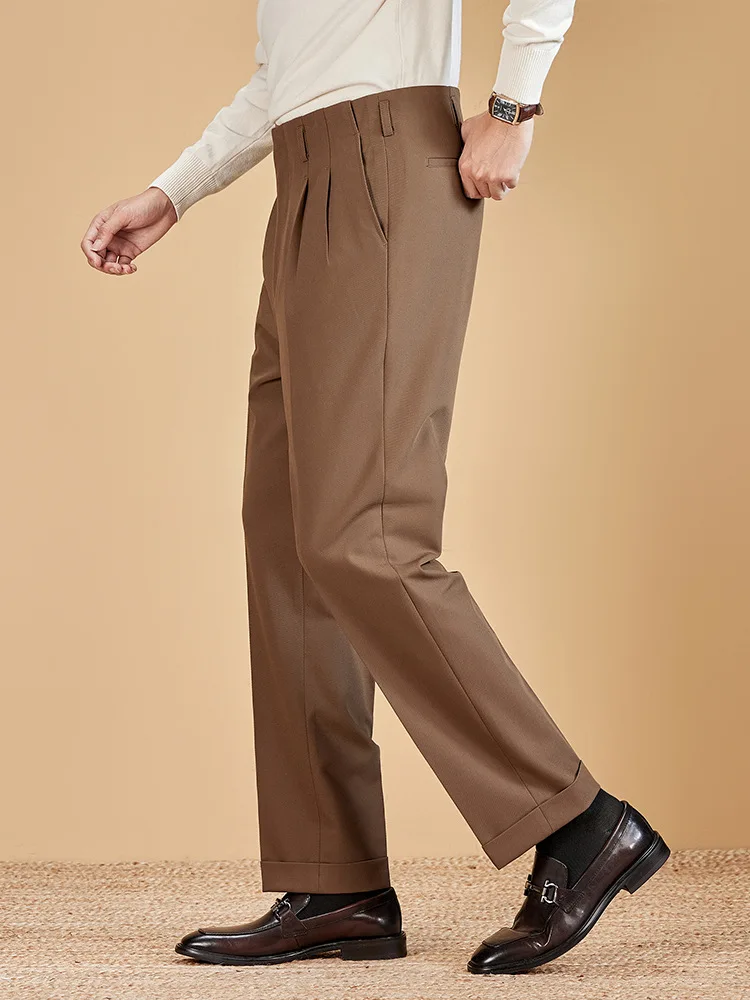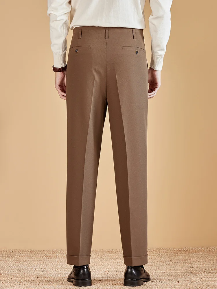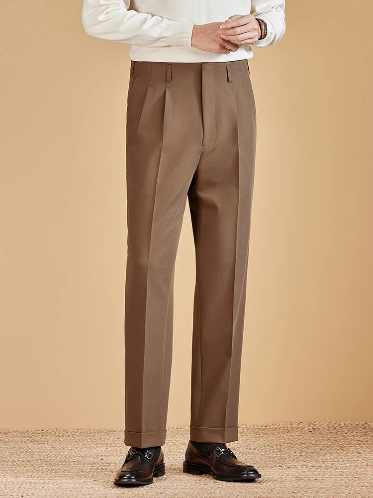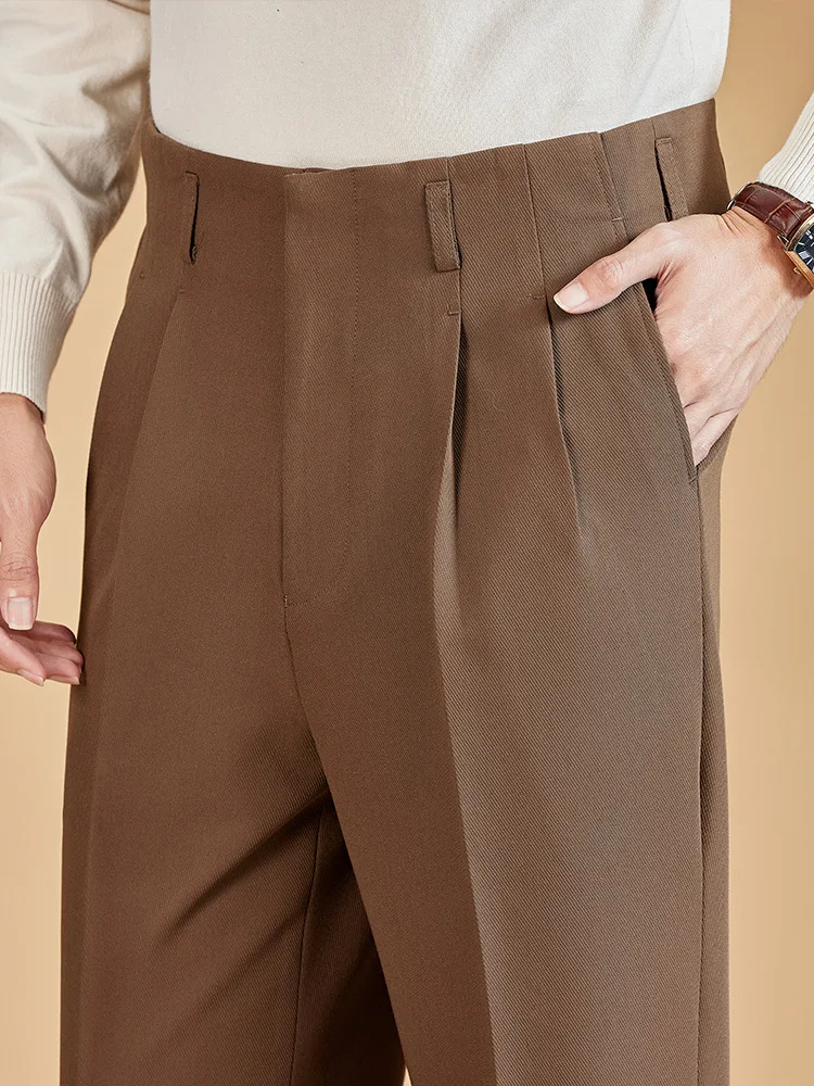 Herringbone 260g Heavy Texture Double Pleat Men's Retro Casual Pants Suit Pants
