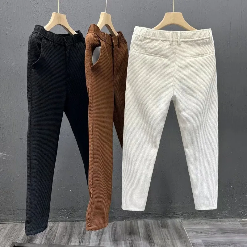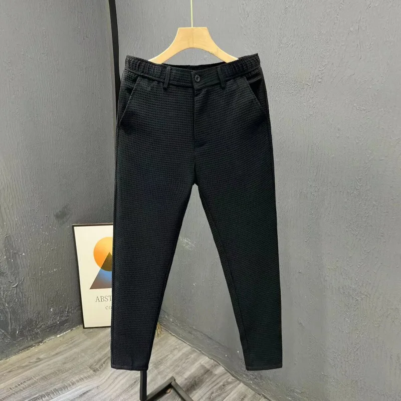 Fashion Waffle Pattern Men's Trousers Trendy and Versatile Korean-style Business Trousers Slim-fit Tapered Casual Suit Trousers