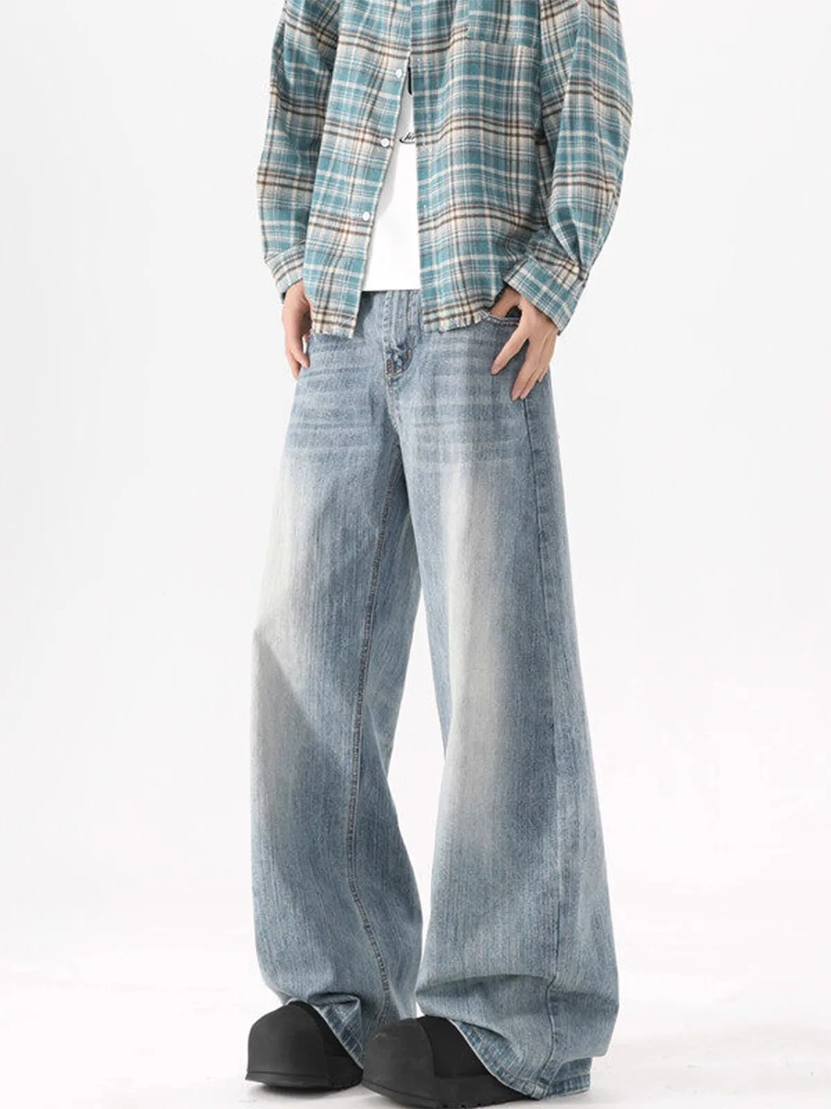 Men's Summer New Washable Jeans, High Street Versatile Casual American Loose Wide-leg Trousers