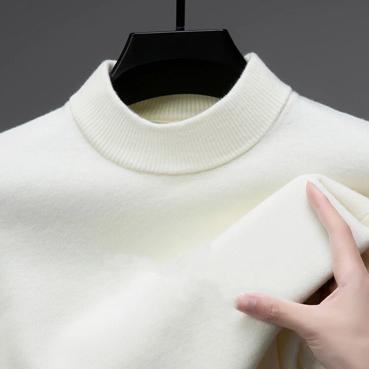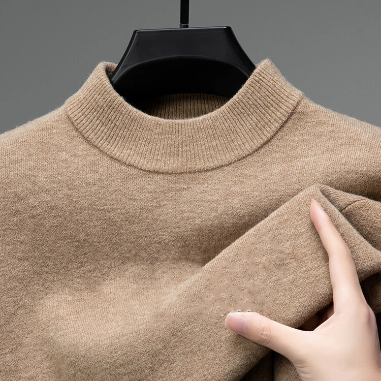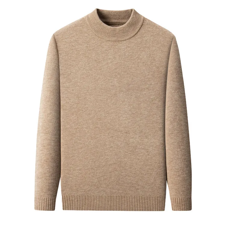 Men's Half-turtleneck Woolen Sweater Autumn and Winter New Solid Color Warm Loose Knitted Thickened Sweater Men's Base Layer