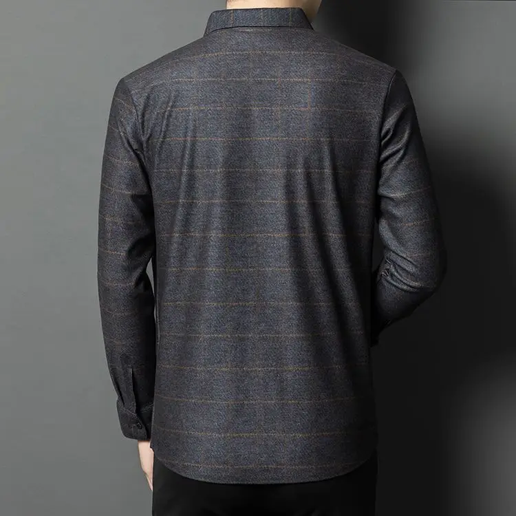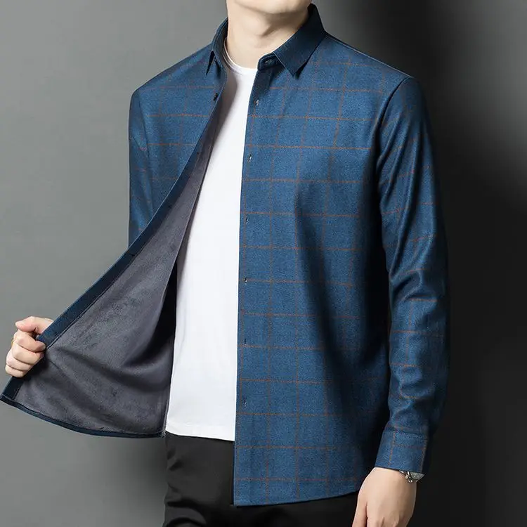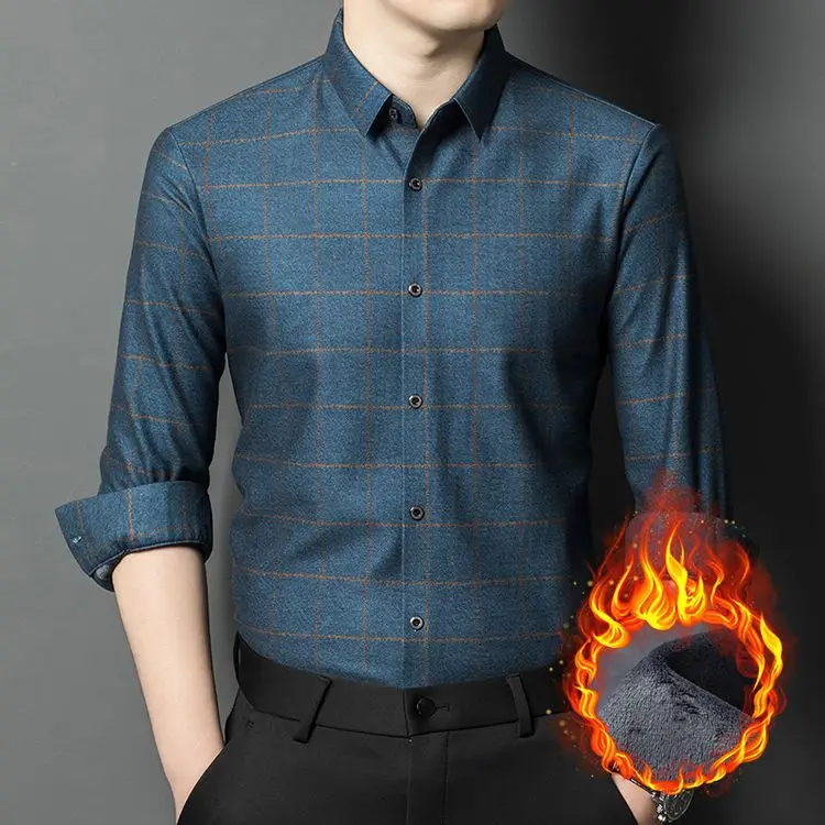 Men's Fleece Shirt Autumn and Winter Business Leisure Non-iron Men's Fashion Long-sleeved Shirt