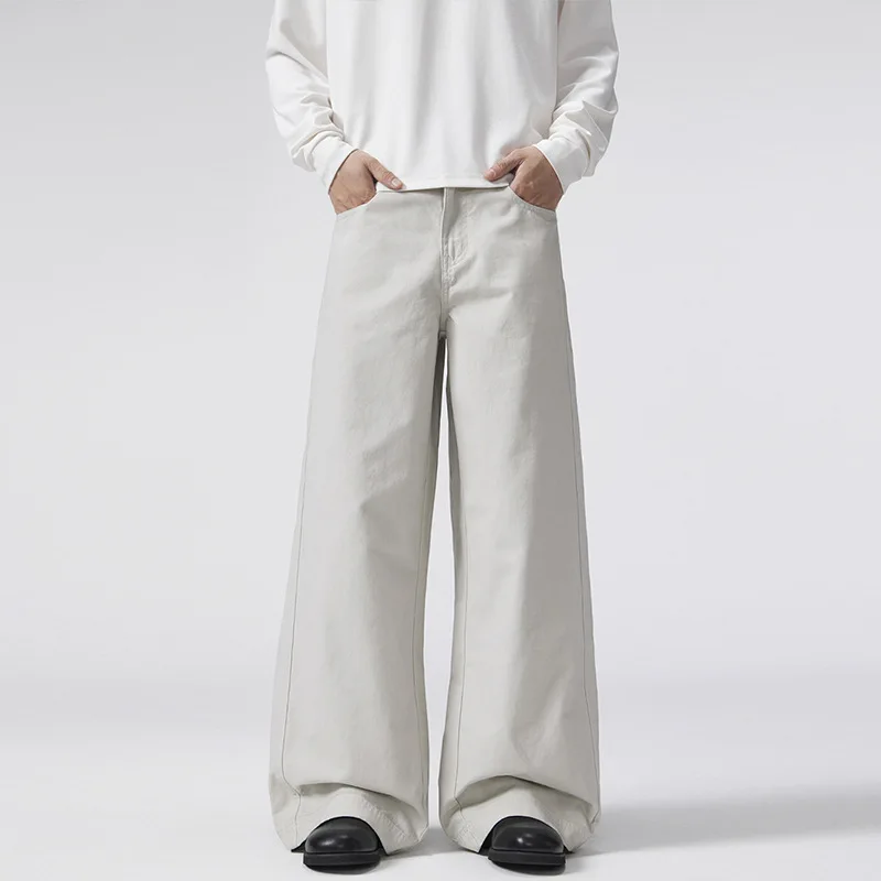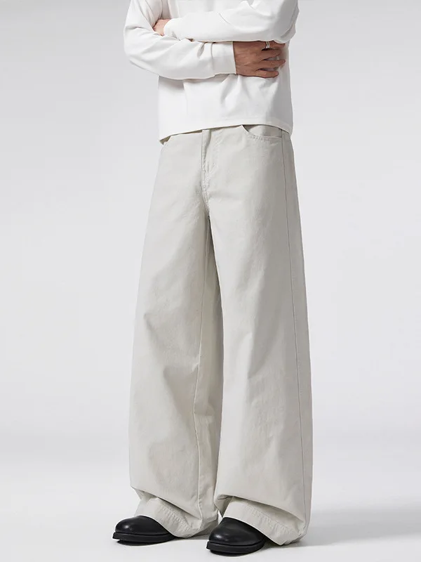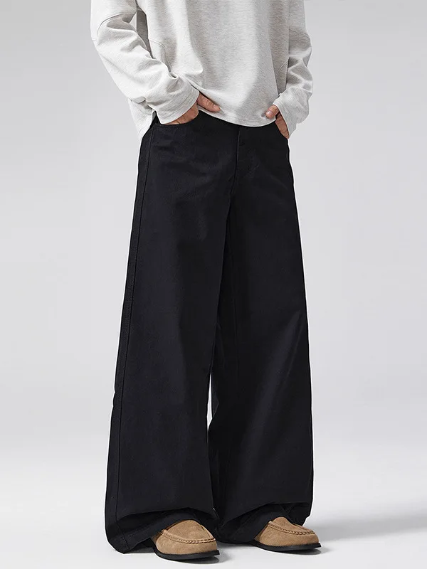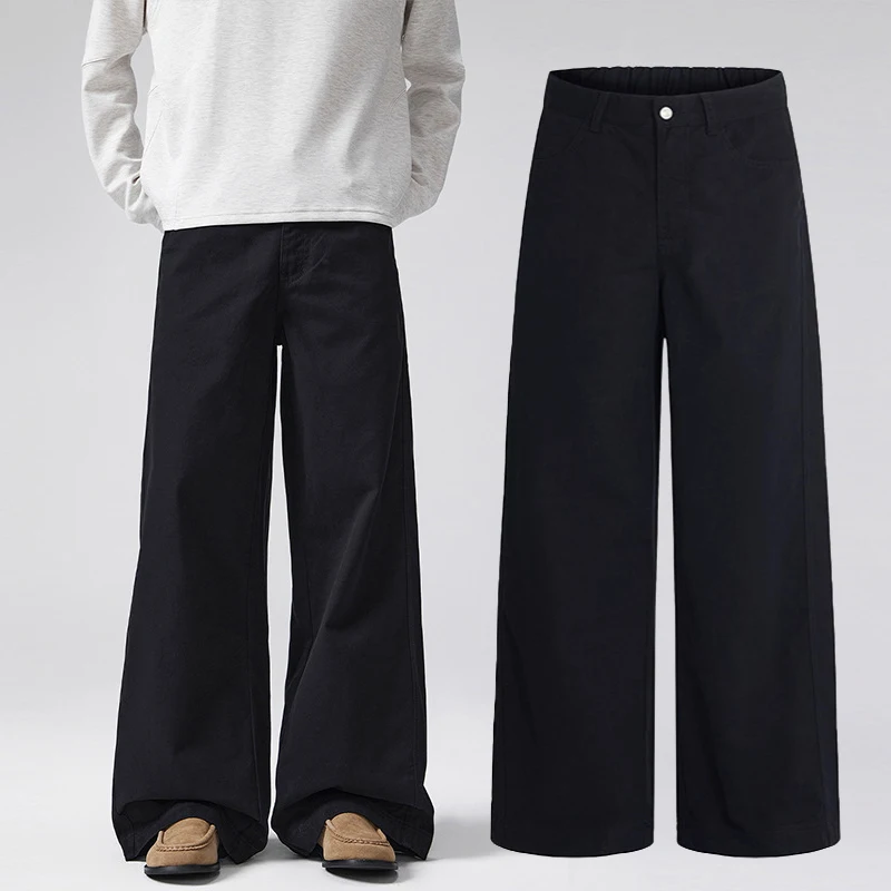 Custom A-shaped Cross-ribbed Pure Cotton Casual Pants for Men and Women Wide-leg Versatile Trousers