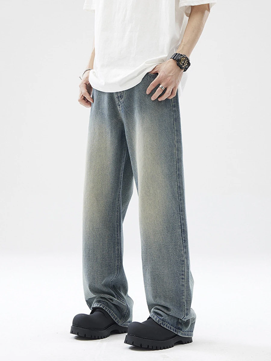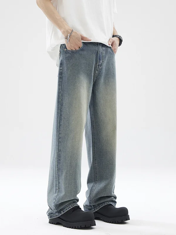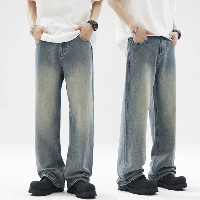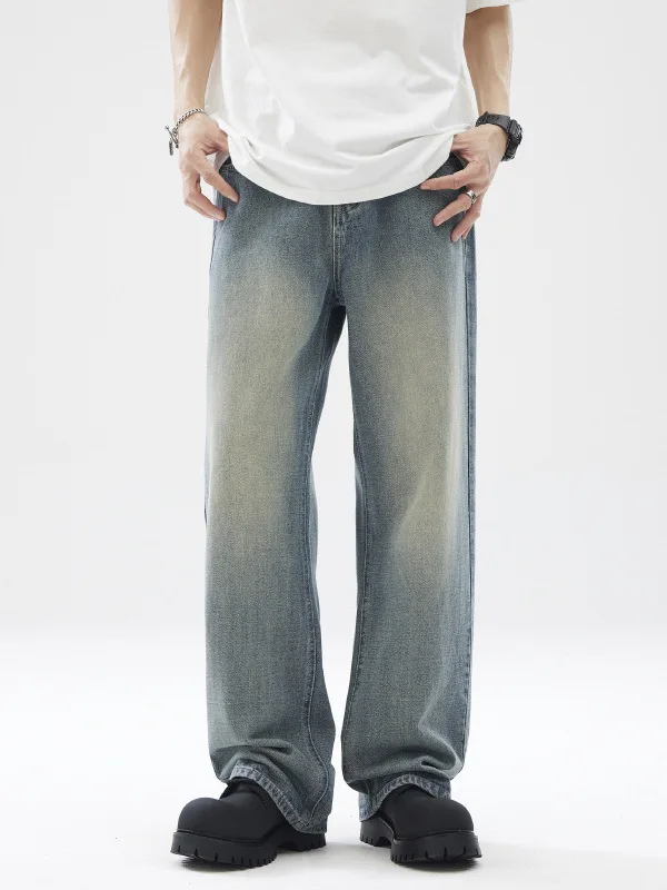 Custom Men's Casual Loose Straight Jeans New Washed-down Drape Loose Blue Pant