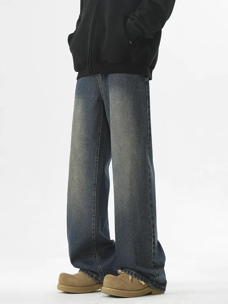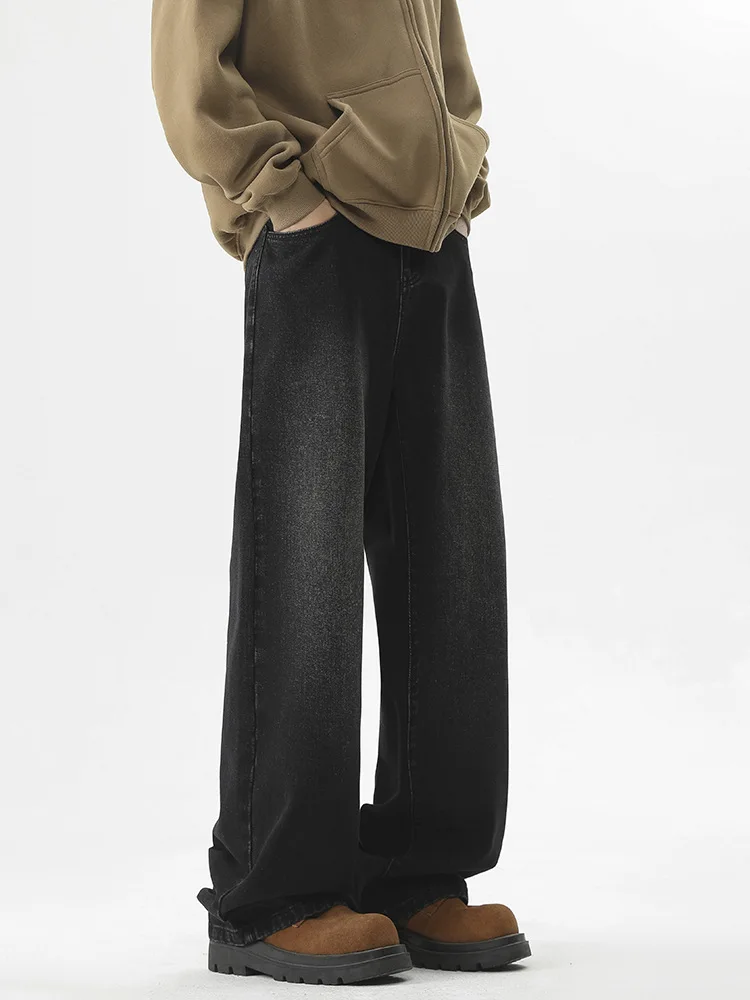 Men's Straight Leg Slightly Flared Jeans with Thickened Lining for a High-end Casual Look