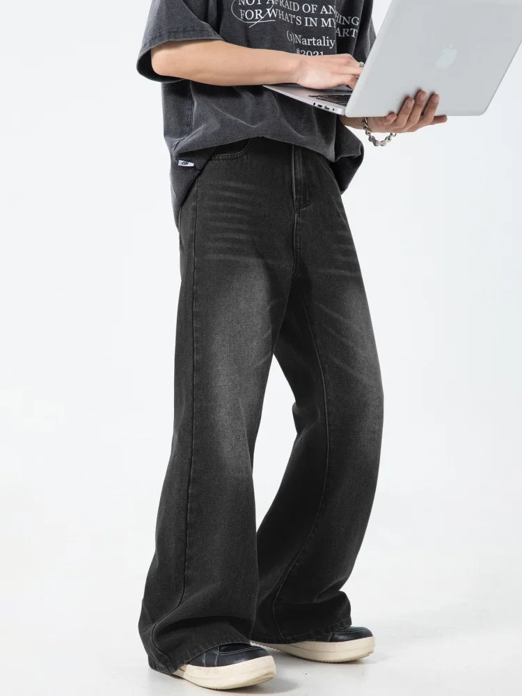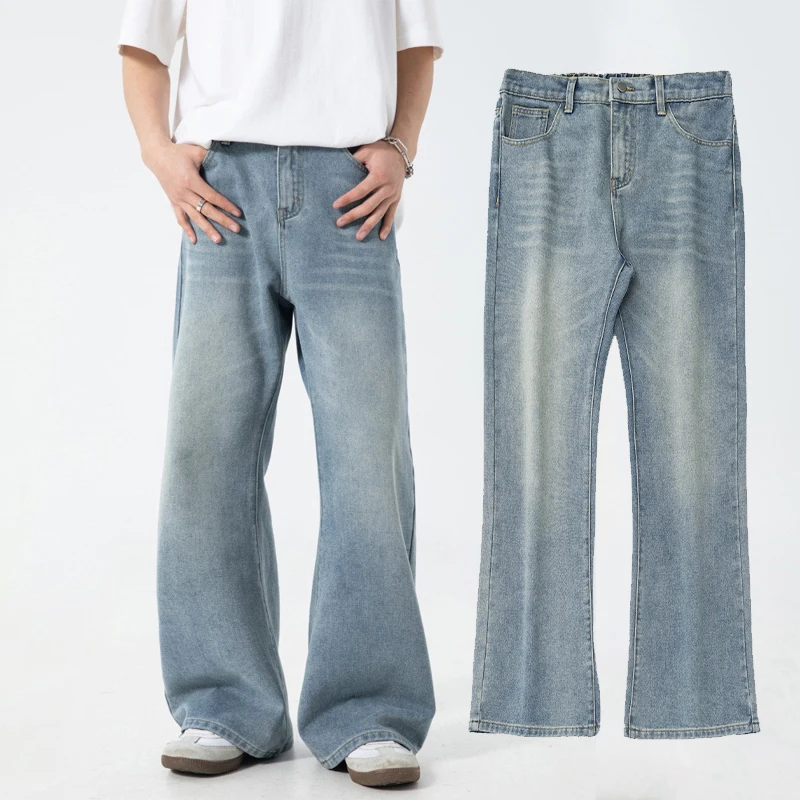 Washed American Style Slightly Flared Jeans for Spring and Summer New Long Trousers Loose High Street Vintage Bell-bottom Pants