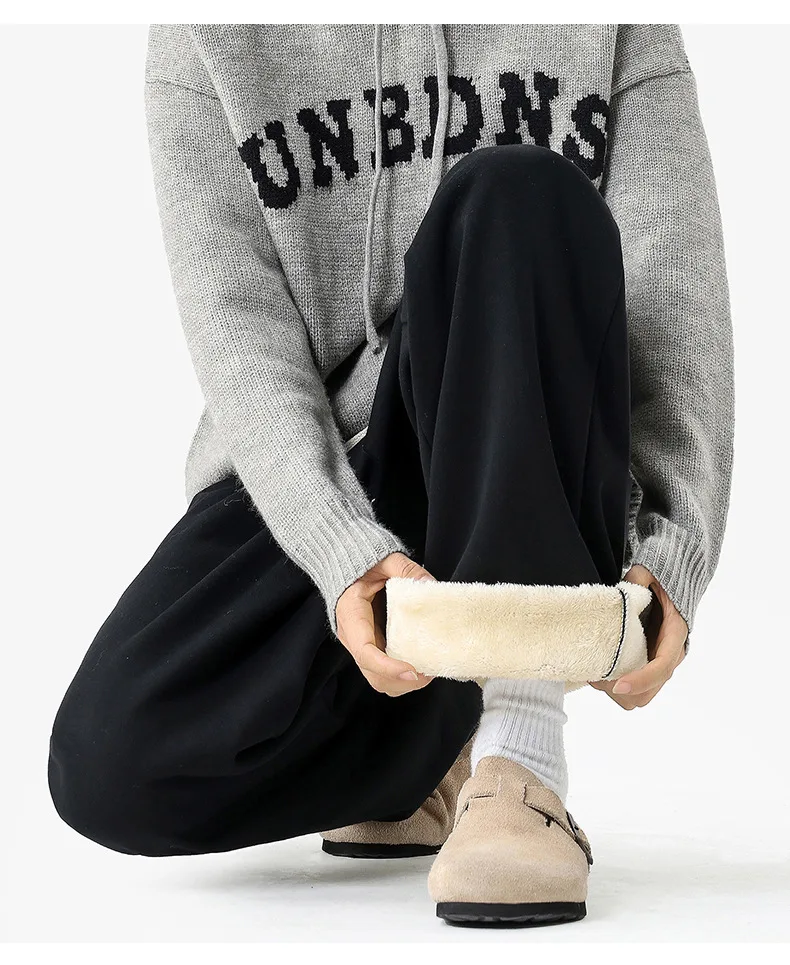 Autumn and Winter New Trousers for Men Thickened Warm Straight-leg Casual Pants Wide-leg Loose Sweatpants for Men