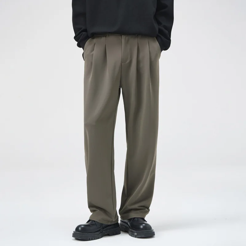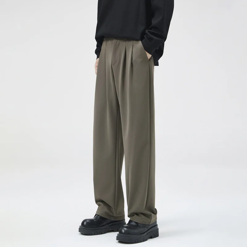 Straight Plain Color Casual Pants for Men; Wrinkle-resistant Trousers with a Draping Effect