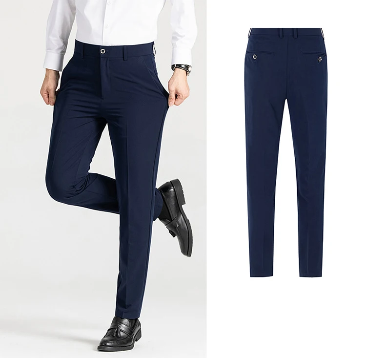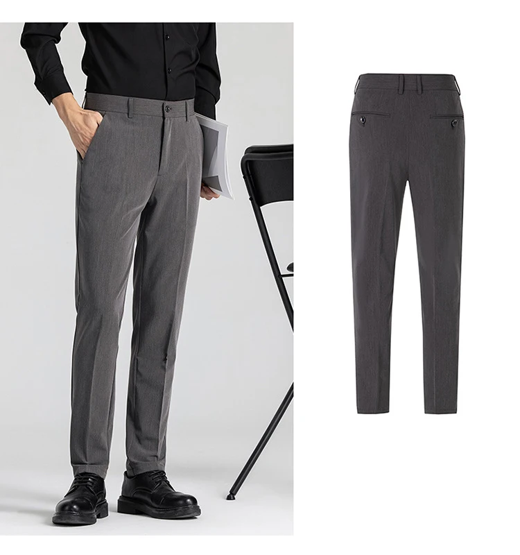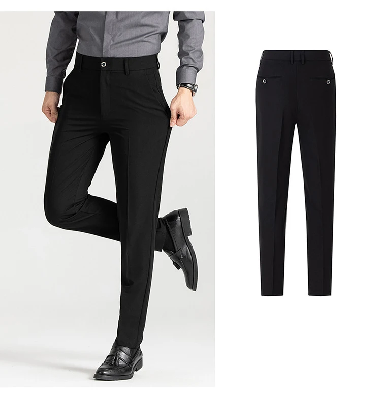 Black Loose Men's Suit Pants with a Straight Leg for Spring and Autumn Slim-fit Casual Trousers with a Draping Effect