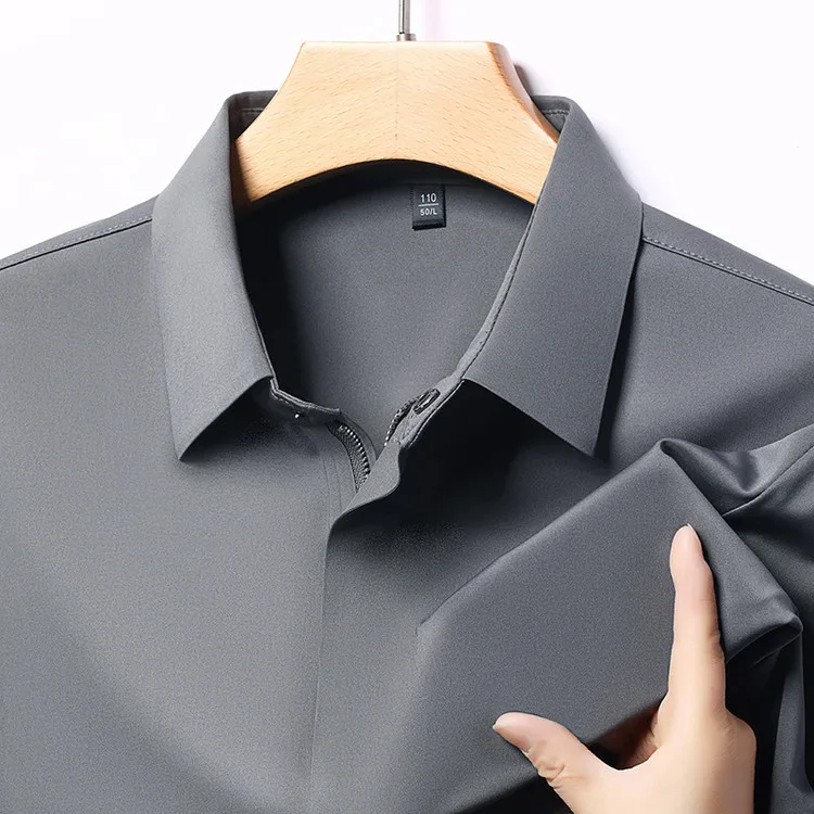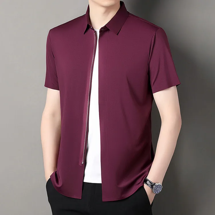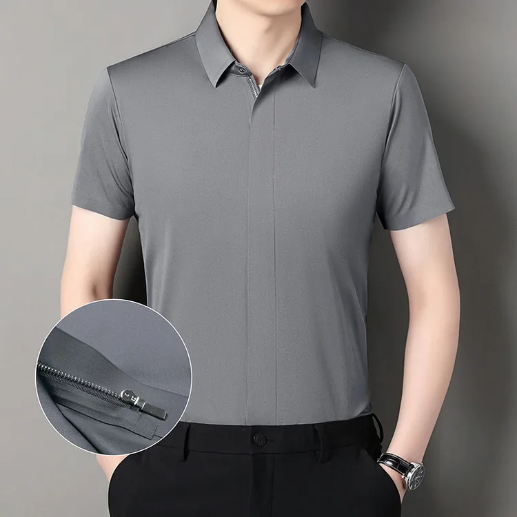 Men's Summer New Zipper Shirt Thin and Slim Fit Casual Short Sleeve T-shirt for Middle-aged Men with Summer Seamless Collar