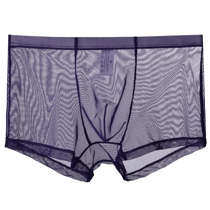 Men's Thin Transparent Panties Mid-waist Mesh Sexy Briefs Breathable Bare-feeling Youth Boxer Briefs