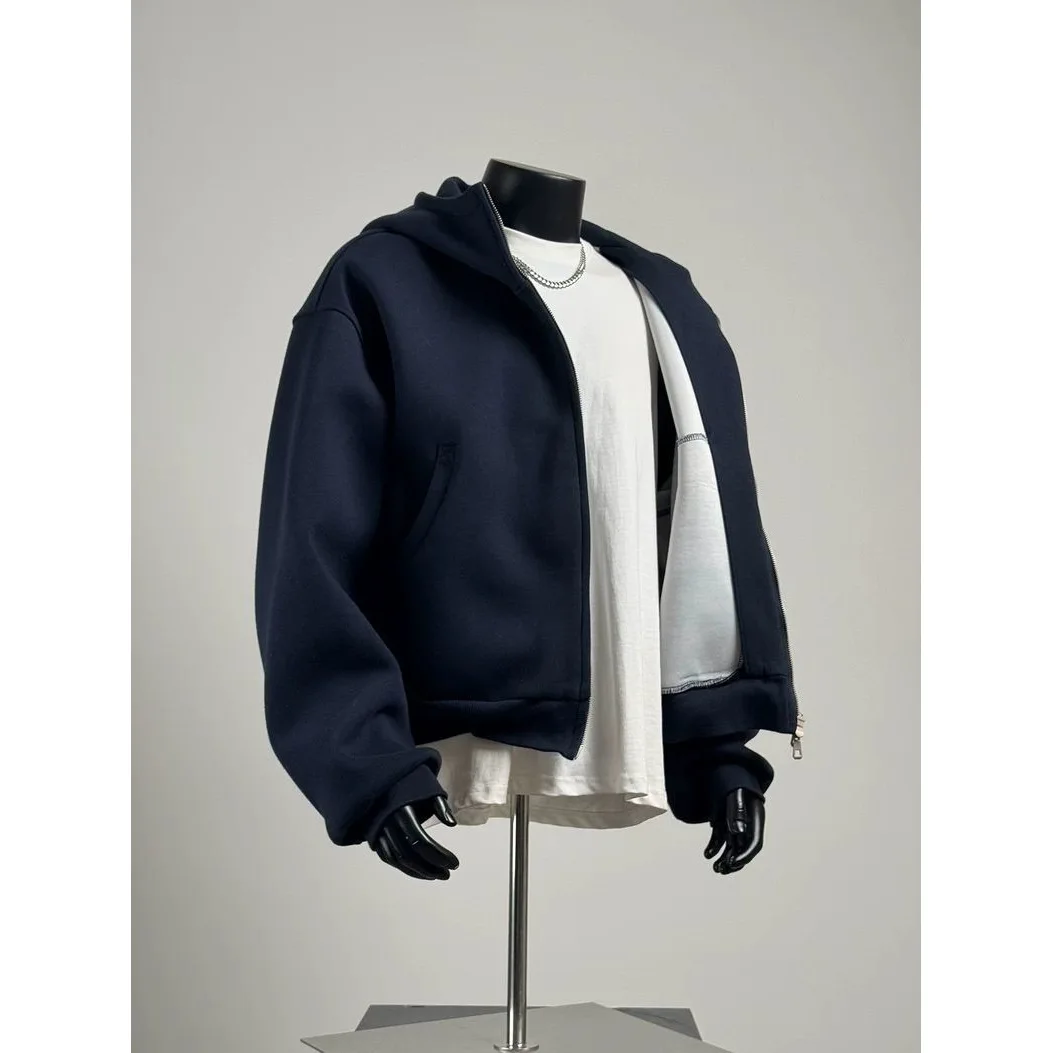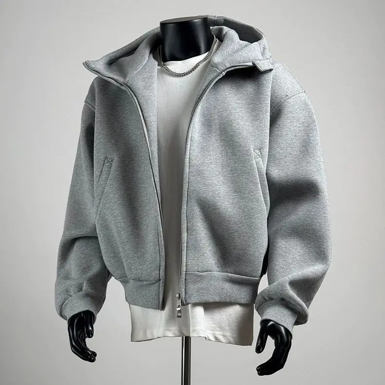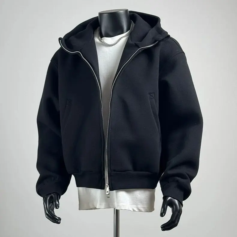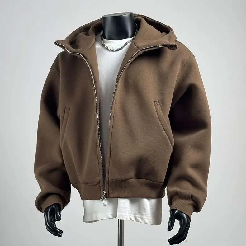 Heavyweight Hoodie for Men Autumn and Spring; Large Size Short Cardigan Casual Vintage American Style Jacket.