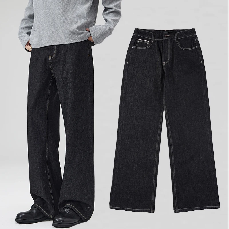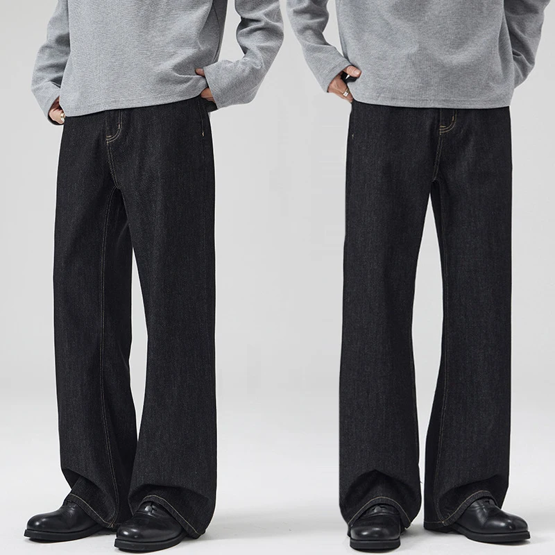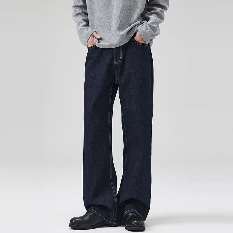 Men's High Waist Loose Straight A-line Trousers Wide Leg Raw Denim Men Baggy Jeans