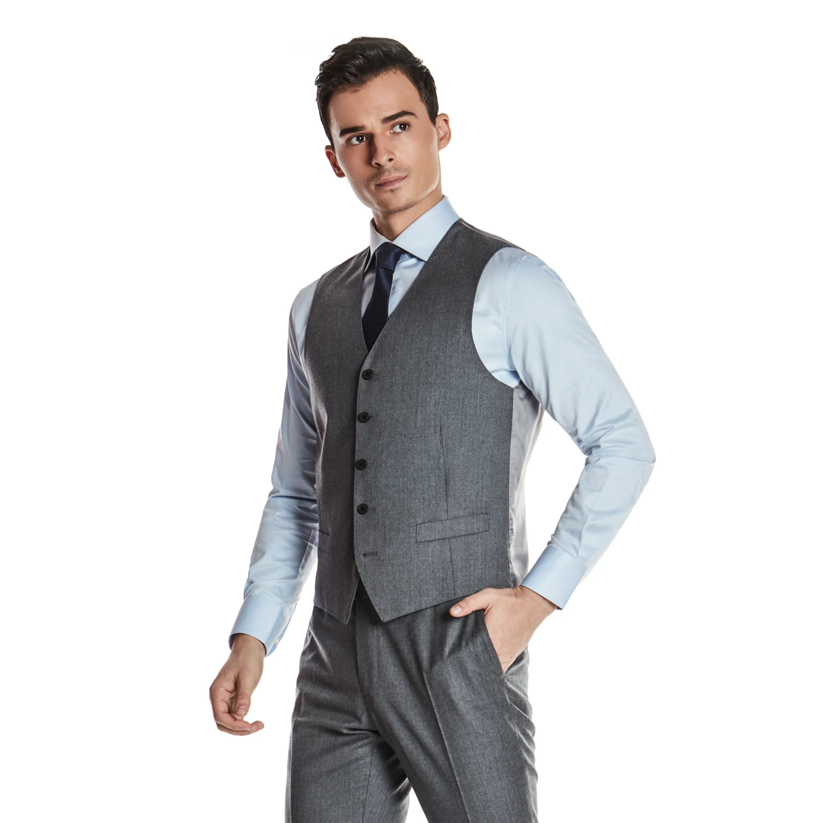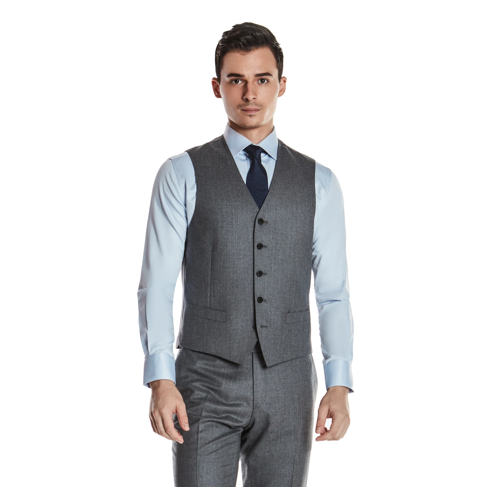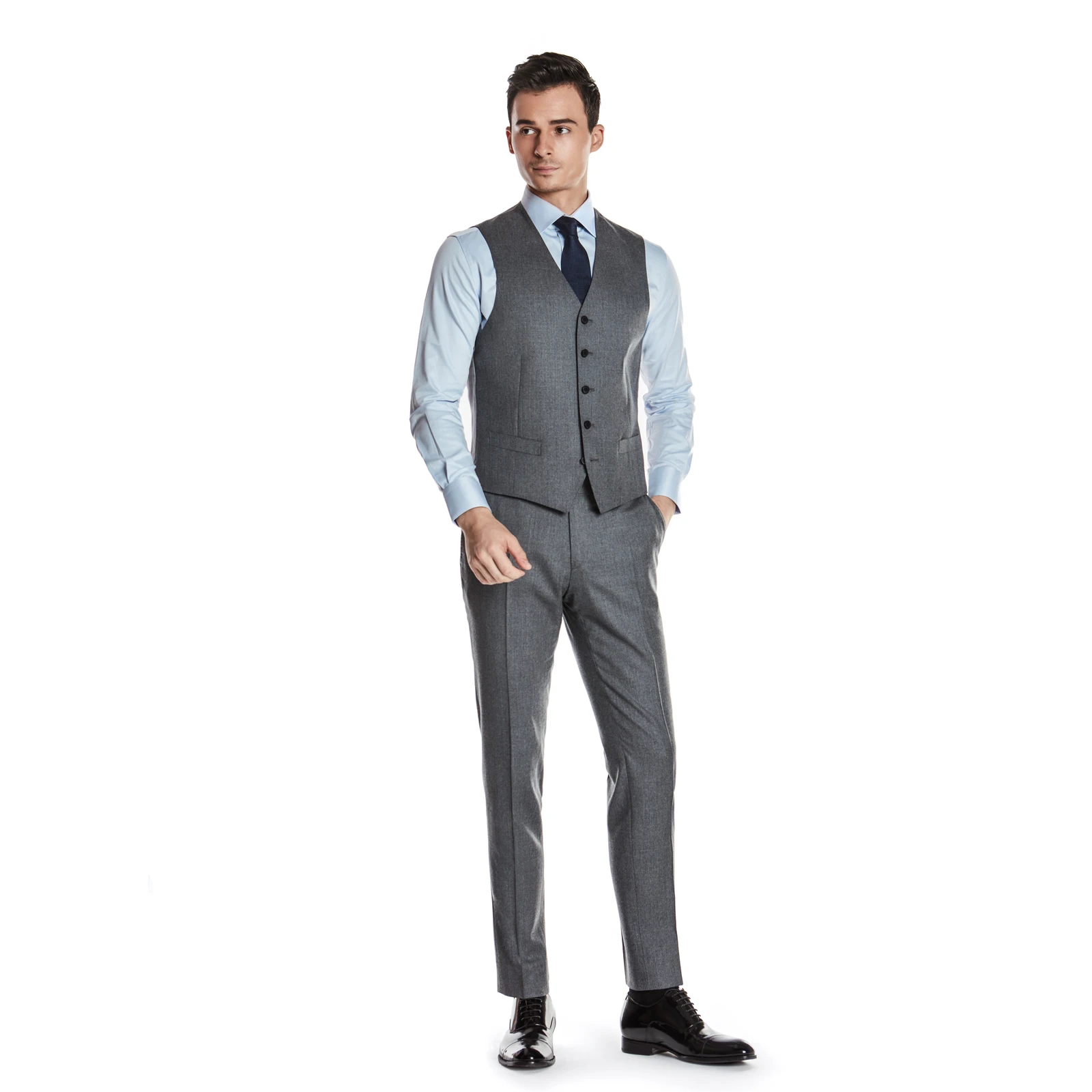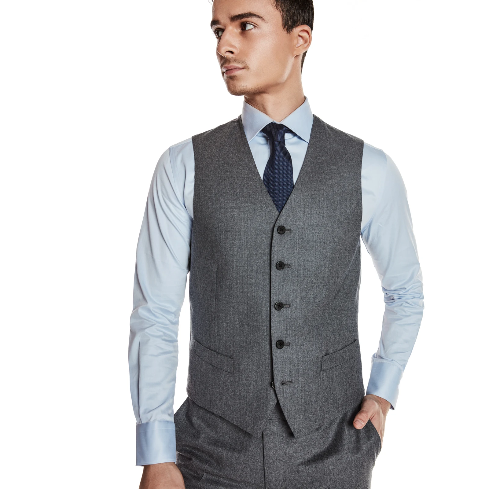 Premium Texture 100% Wool Grey Formal Casual Classic Business Set Vest for Men