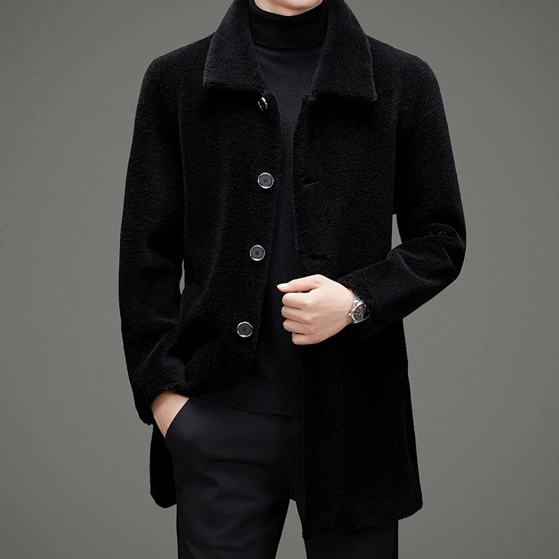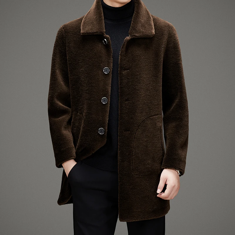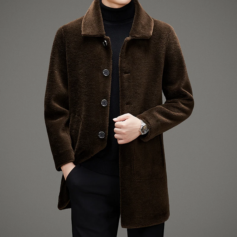 New Style Premium Look Winter Reverse Coat Wholesale Fluffy Warm Wool Sheep Fur Long Coat for Men