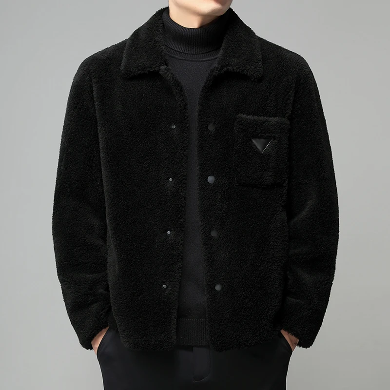Winter 2022 New Men's Wool Embroidered Flight Jacket Black Sheepskin Shearling Leather Jacket