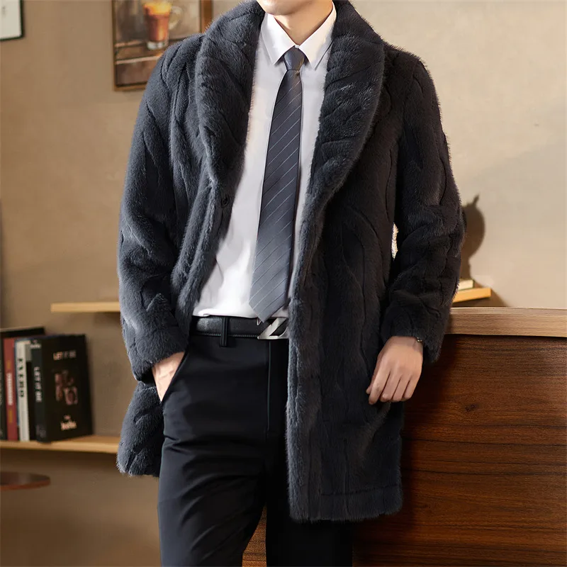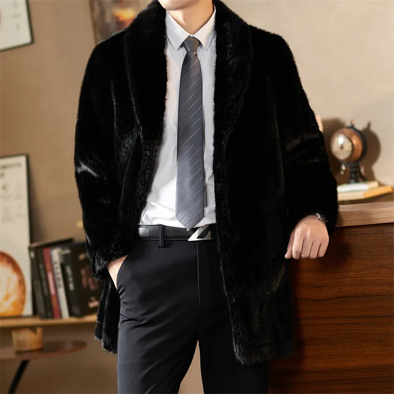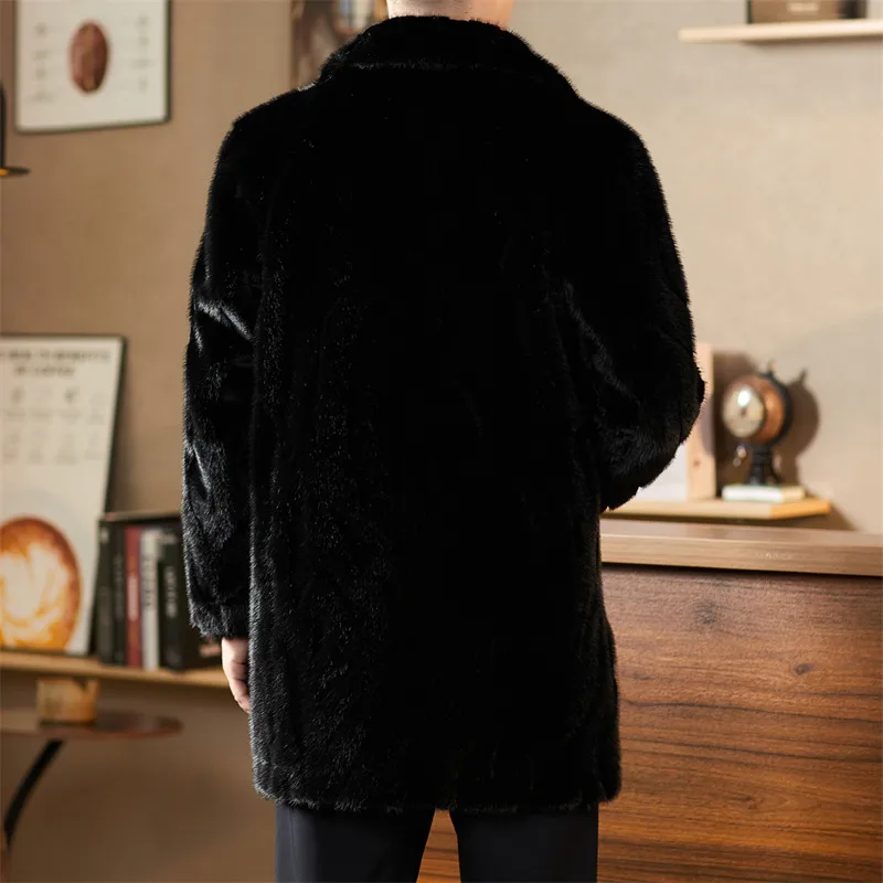 Factory Directly Sale Long Sleeve Fur Outwear Turn Down Collar Long Black Fluffy Fur Faux Coat for Men