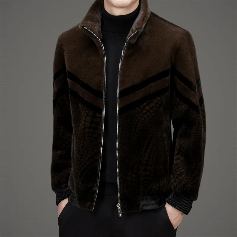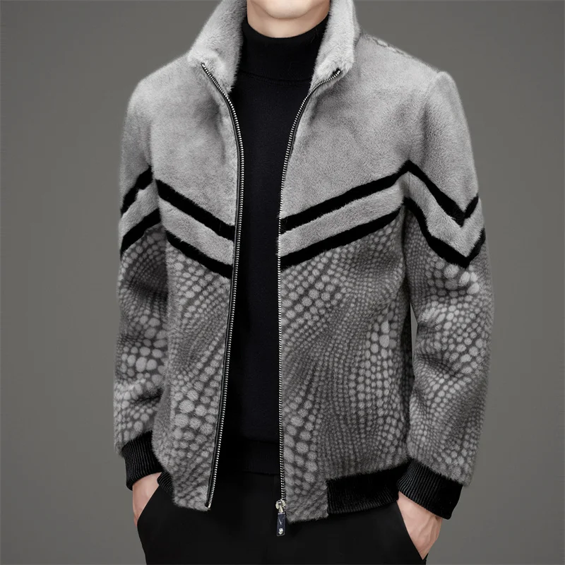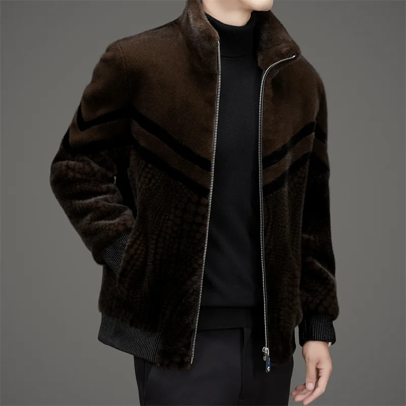 Fashion Design Winter Fall Male Apparel Soft Cozy Stand Collar Faux Mink Fur Coat Fur Jacket Men