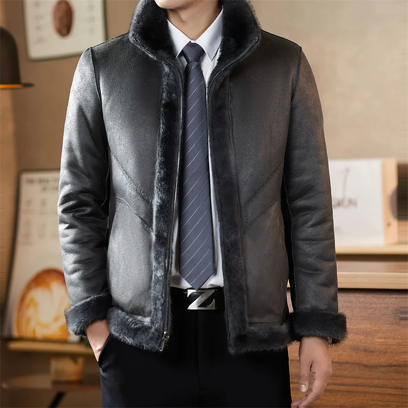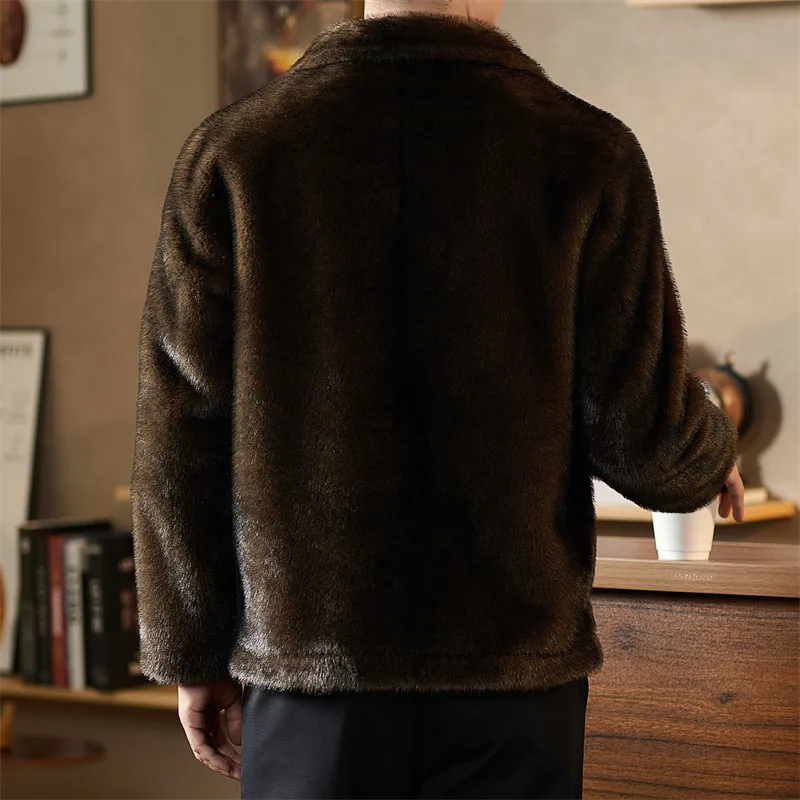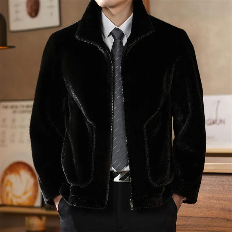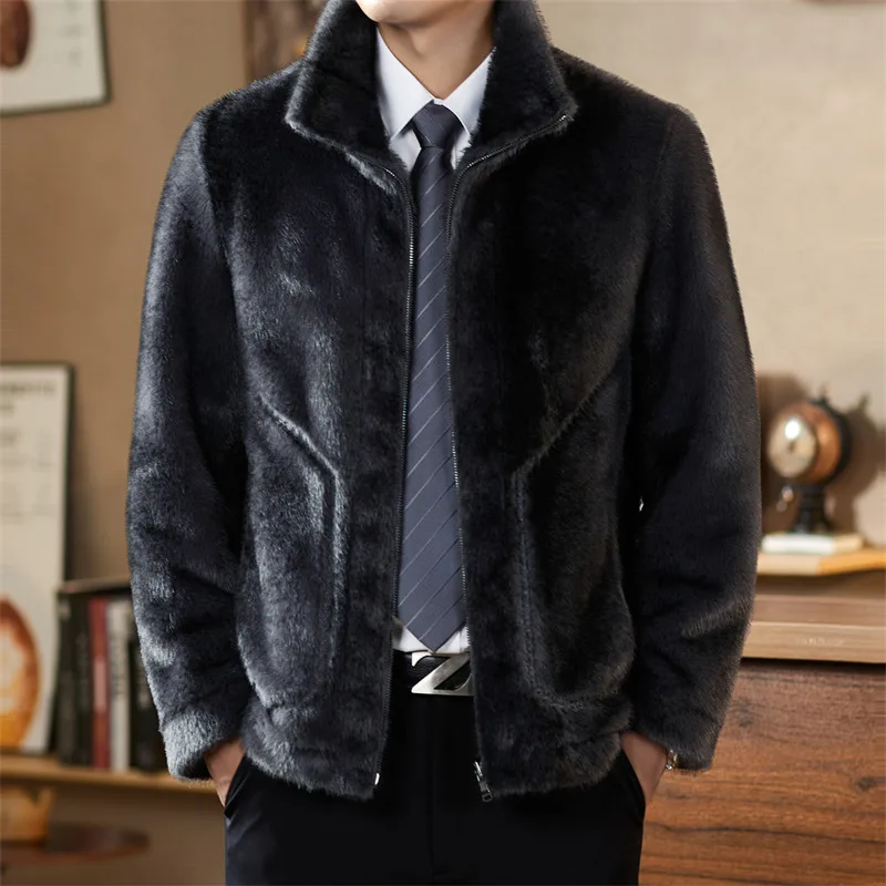 Wholesale Winter Casual Imitation Mink Jacket Reversible Long Sleeves Zipper Faux Fur Coat Men
