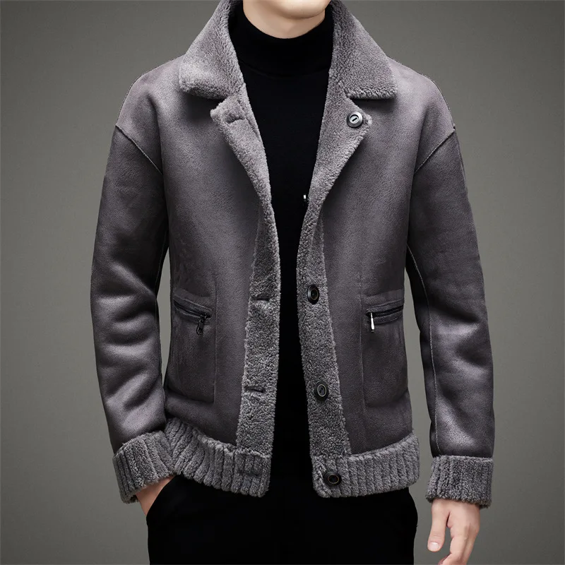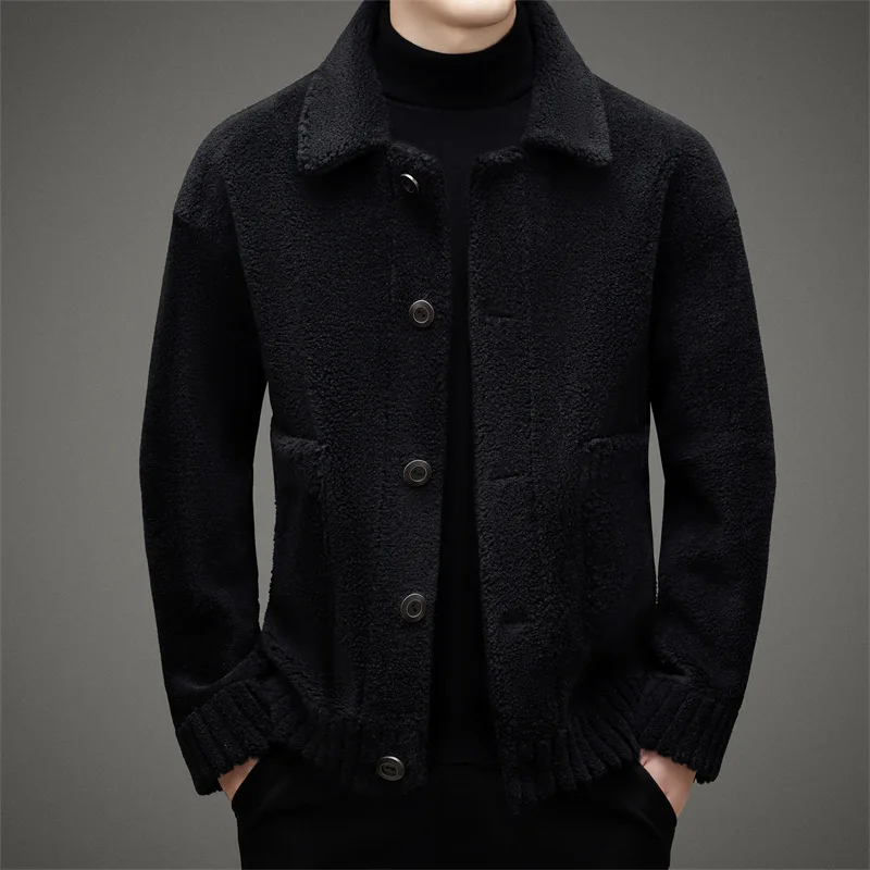 Fashion Street Wear Men'S Jackets Solid Color Double Faced Long Sleeves Lapel Man Wool Blend Fleece Jacket
