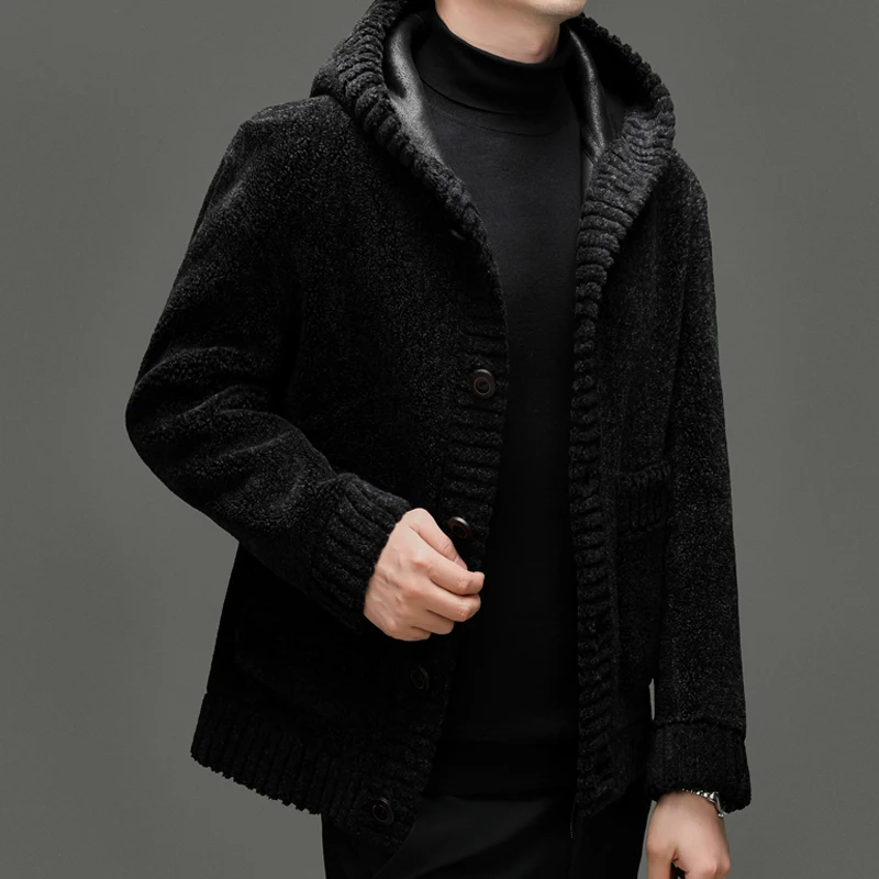 Mens Winter Fall New Collection Single Breasted Casual Loose Comfortable Hooded Fleece Wool Jacket Men