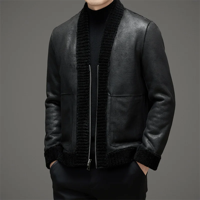 Wool Jacket Sheepskin Coat Leather Jacket Men's Fur Coat Badge A2 Bomber Jacket