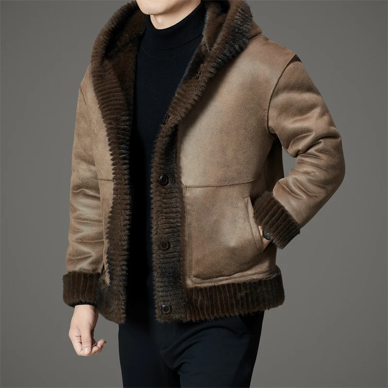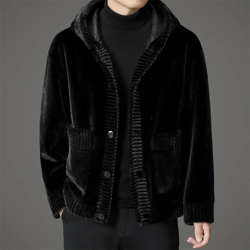 Hot Selling Wholesale Solid Color Man Winter Jacket Luxury Single Breasted Pocket Faux Fur Hooded Coat Mens