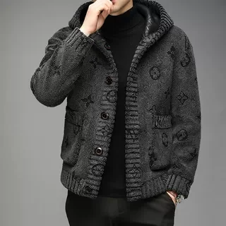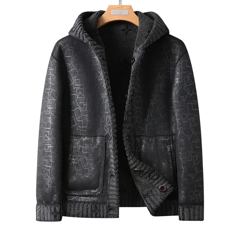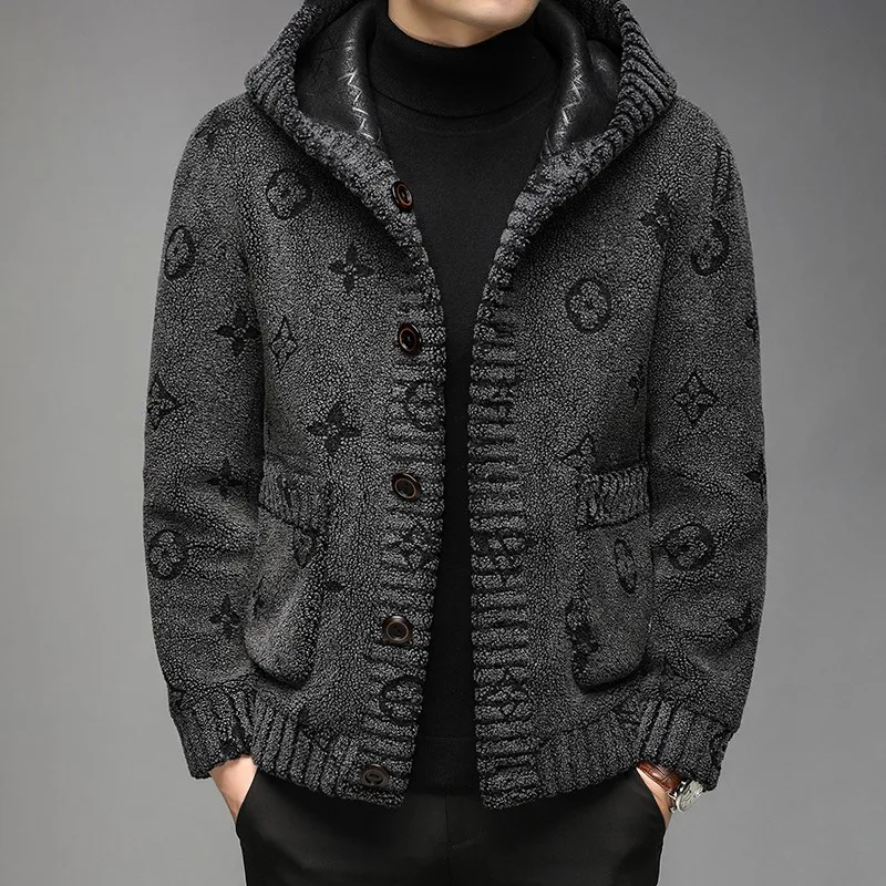 Luxury Winter Comfortable Warm Outwear Single Breasted Men's Hooded Reverse Wool Fleece Jacket