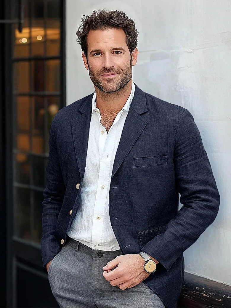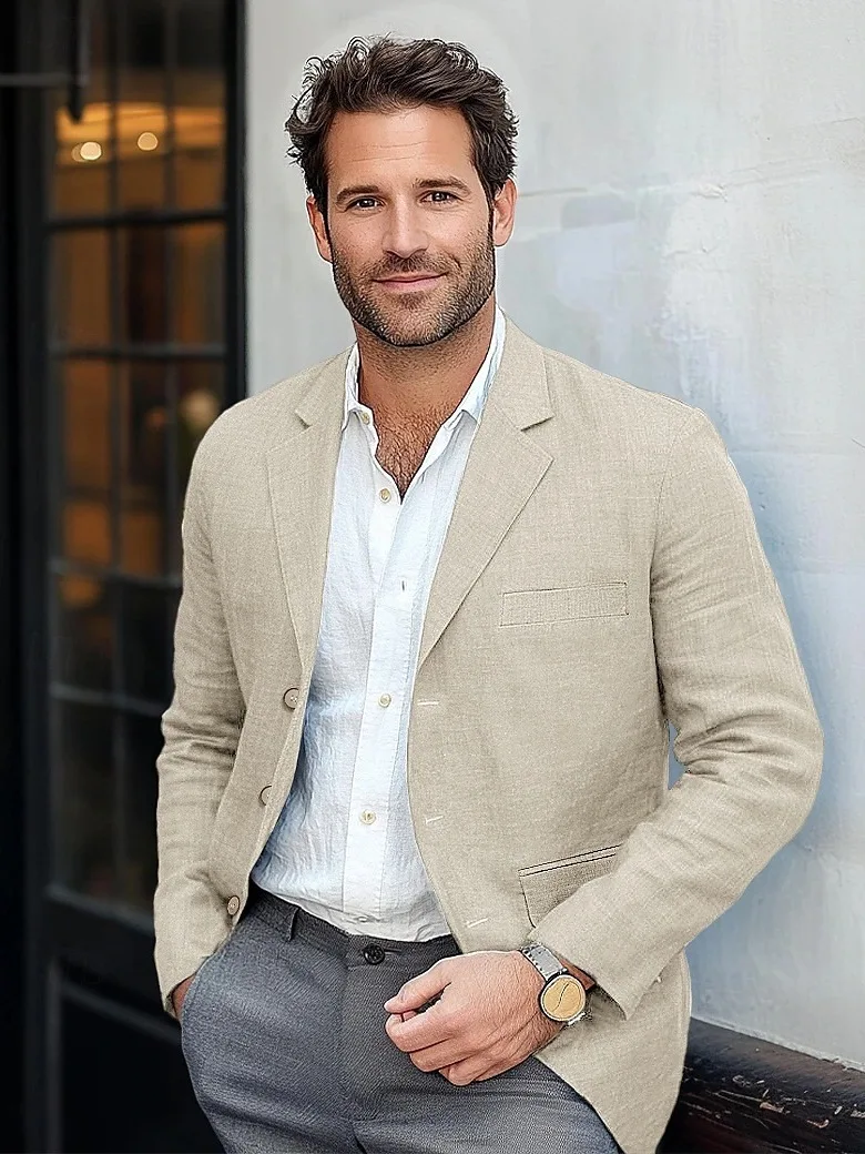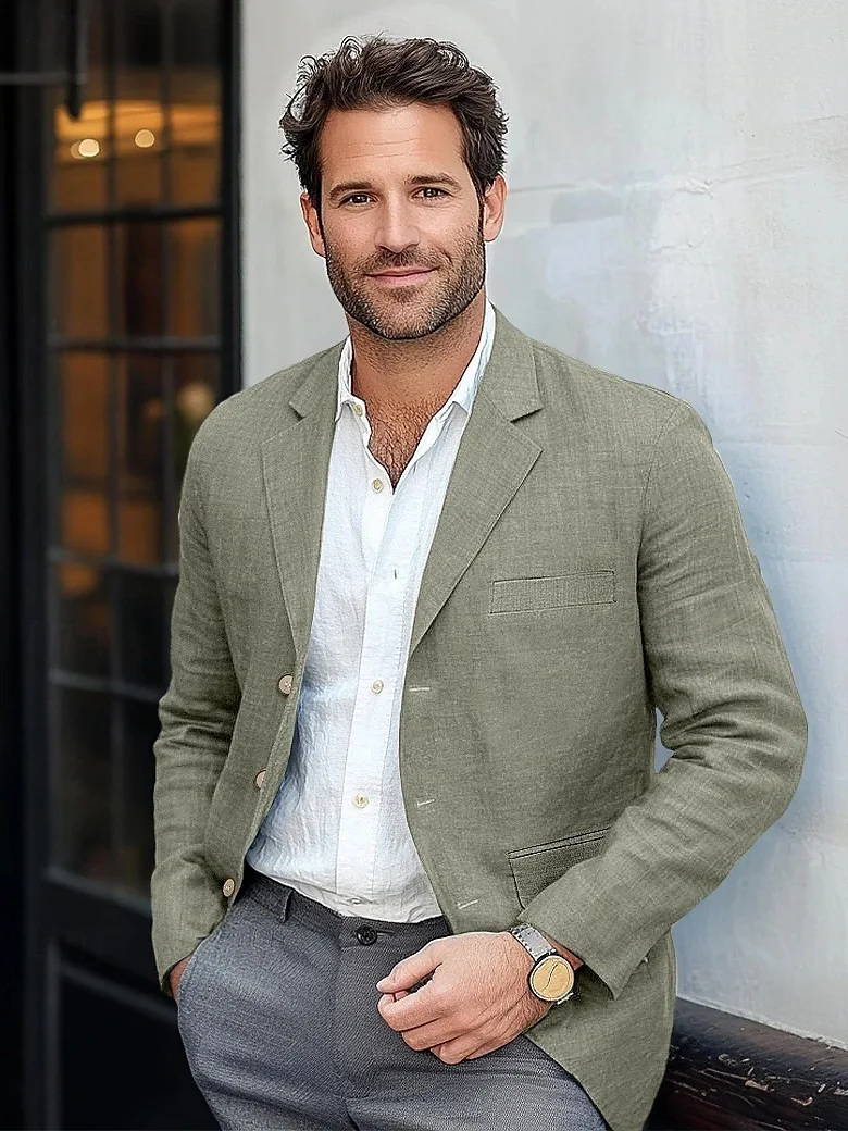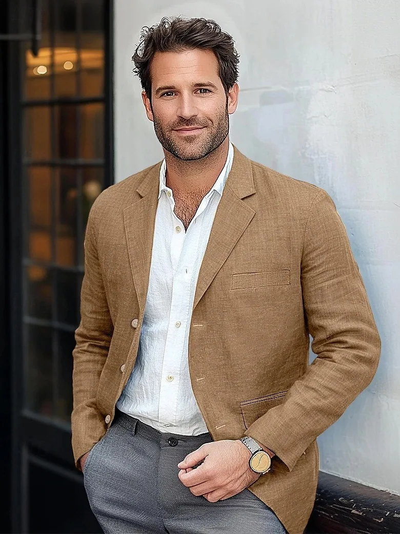 High Quality YiFeng Men's Color Polyester Cotton Breathable V-neck Digital Printed Single Breasted Vintage Casual Business Suit